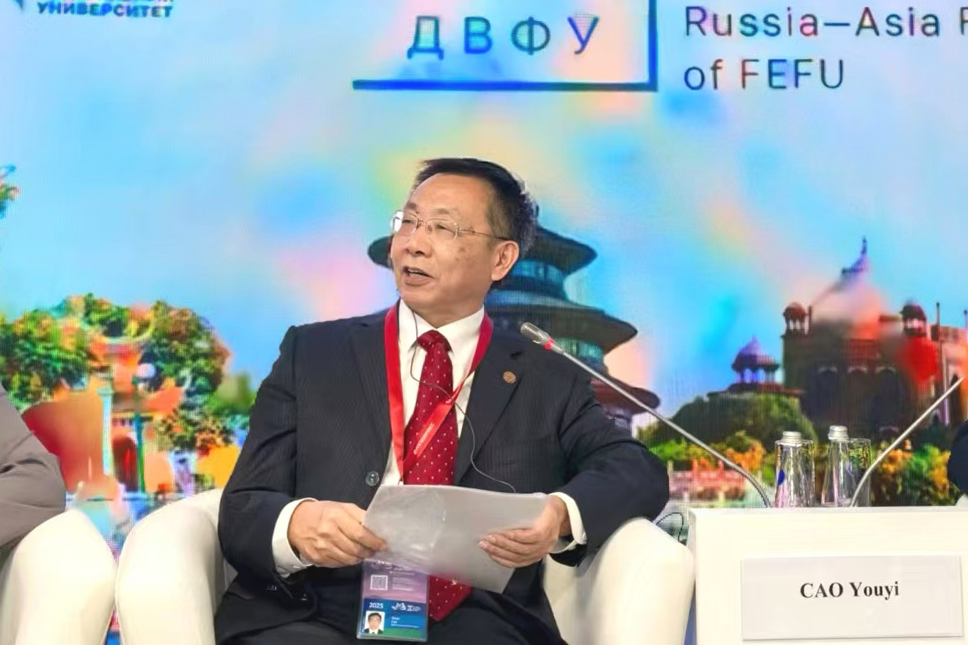9月3日,代表团参加在远东联邦大学举办的俄亚学院成立开幕式暨“俄罗斯-亚洲师资队伍:俄亚人力资源潜力的开发”论坛,并作发言。论坛上,远东联邦大学校长鲍里斯·科罗别茨表示,完美网页版位于经济与政治决策的重要中心上海,且拥有深厚的俄罗斯研究力量,两校即将签署的联合培养项目将为两校的合作奠定坚实的基础。曹友谊在发言中表示,上海与符拉迪沃斯托克(海参崴),分别作为中俄对外开放的窗口,肩负着重要使命。完美网页版自创立之初便深耕苏俄研究,如今在“区域国别学”学科建设浪潮中,对俄罗斯及欧亚地区的研究与人才培养更是重中之重。两校联合学位项目将成为双方务实合作的起点,并进一步拓展多学科、多层次、多类型的交流合作,为中俄人民增进相互认知、促进共同发展贡献力量。