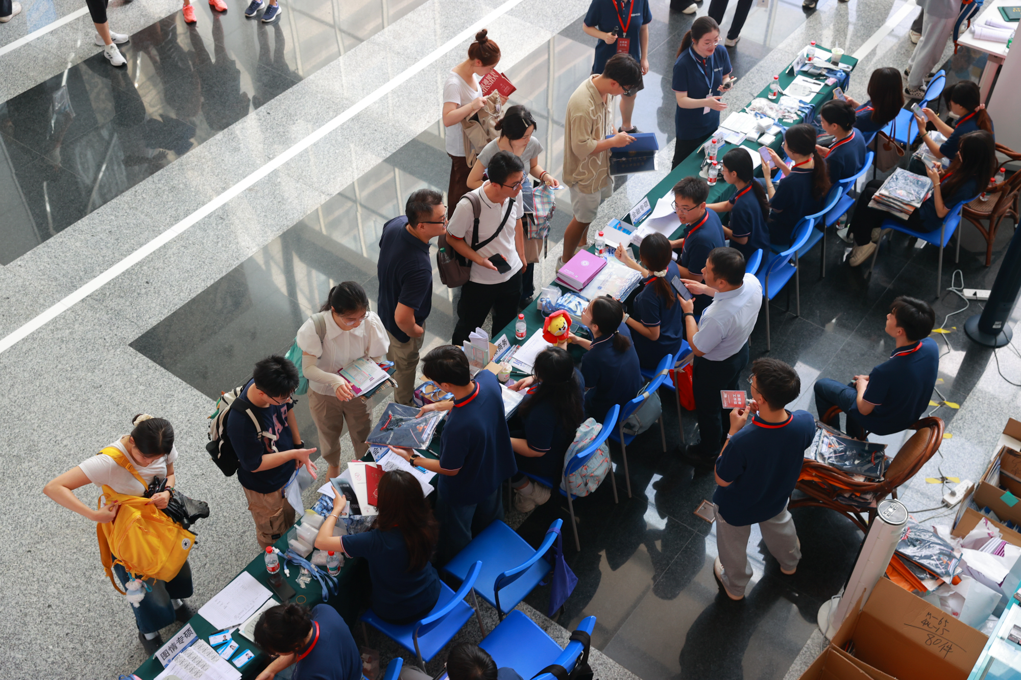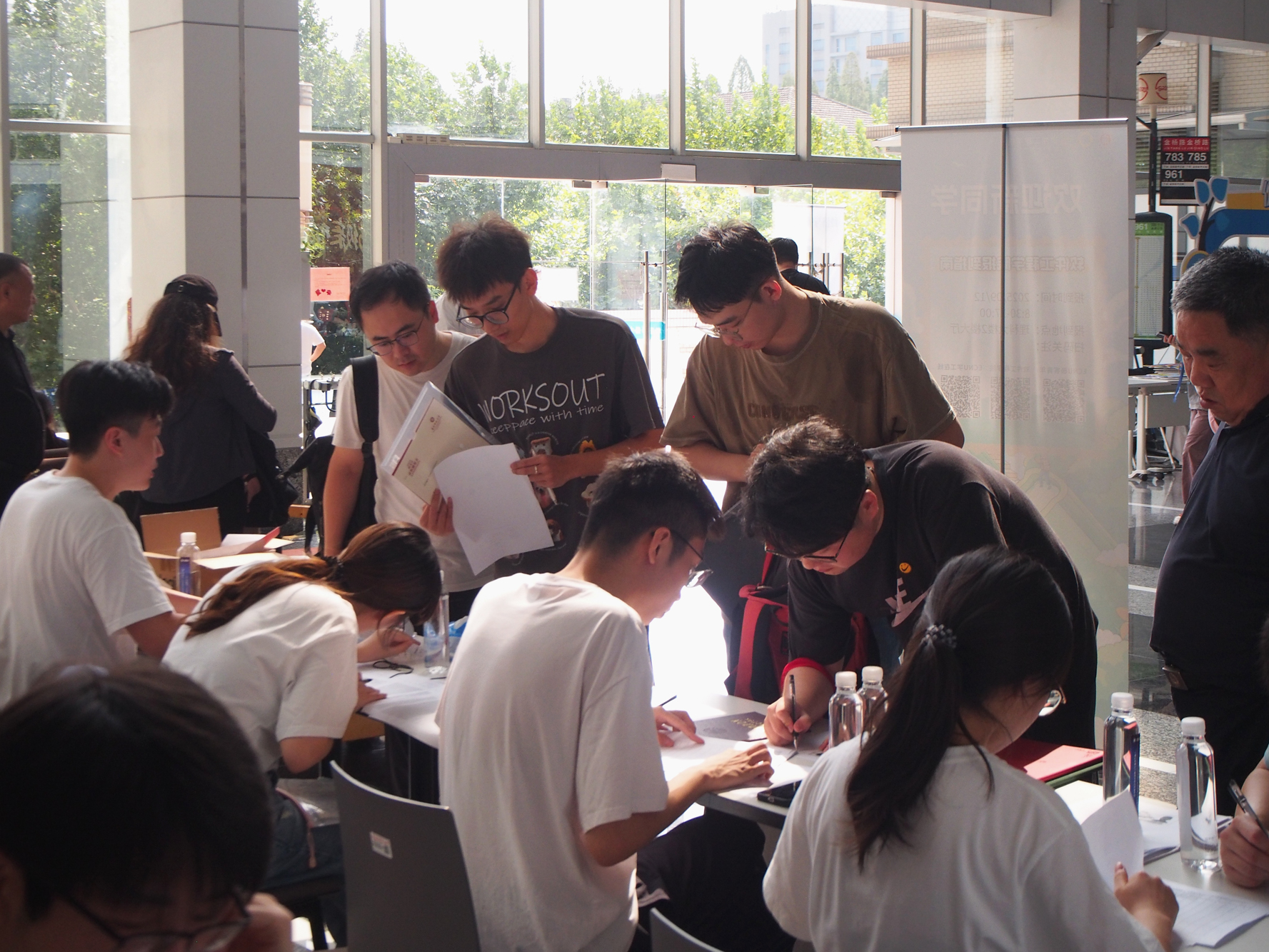 在各报到点,师生志愿者为新生办理入学手续,审核材料、讲解入学注意事项、提供各类咨询,认真细致,有条不紊。