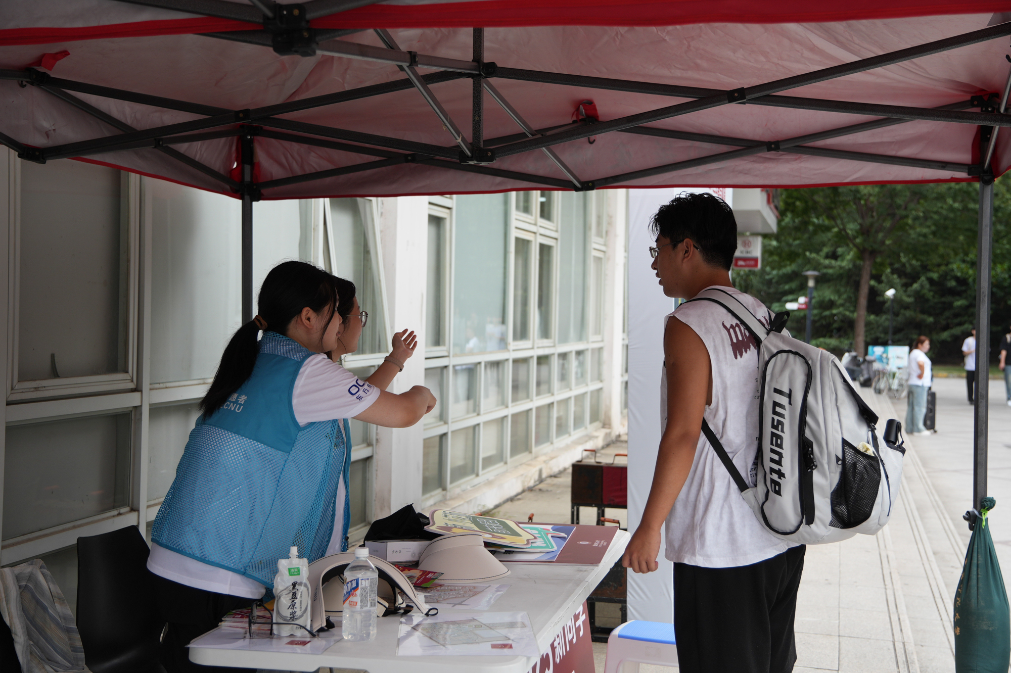校领导曹友谊、程静走访了文史哲楼、生态与环境科学学院、生命科学学院、化学与分子工程学院、数学科学学院、物理与电子科学学院、通信与电子工程学院等地,详细了解迎新工作安排,并与新生及家长交流。