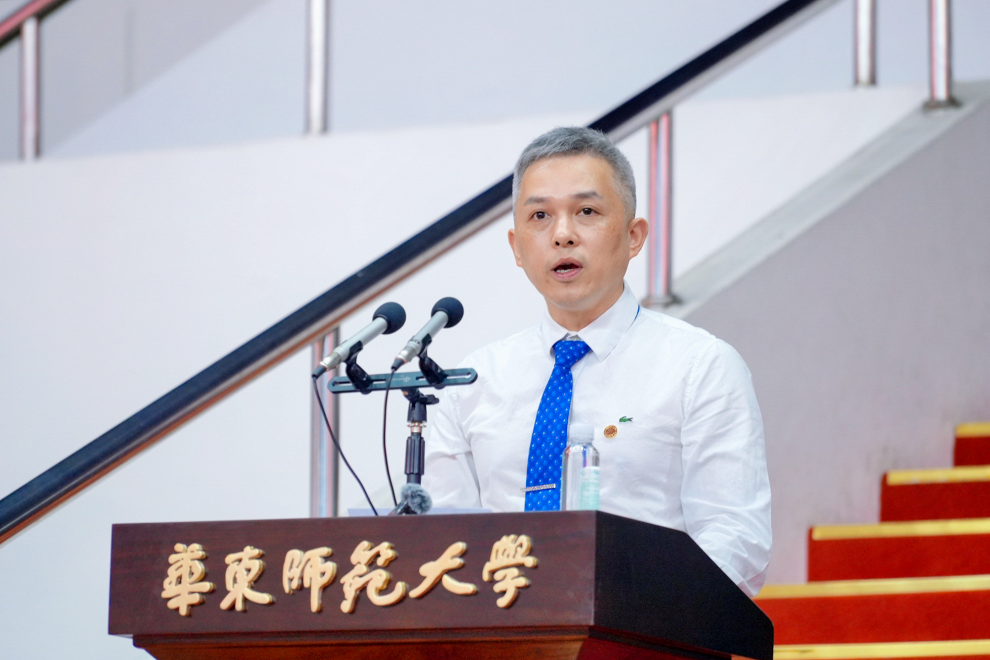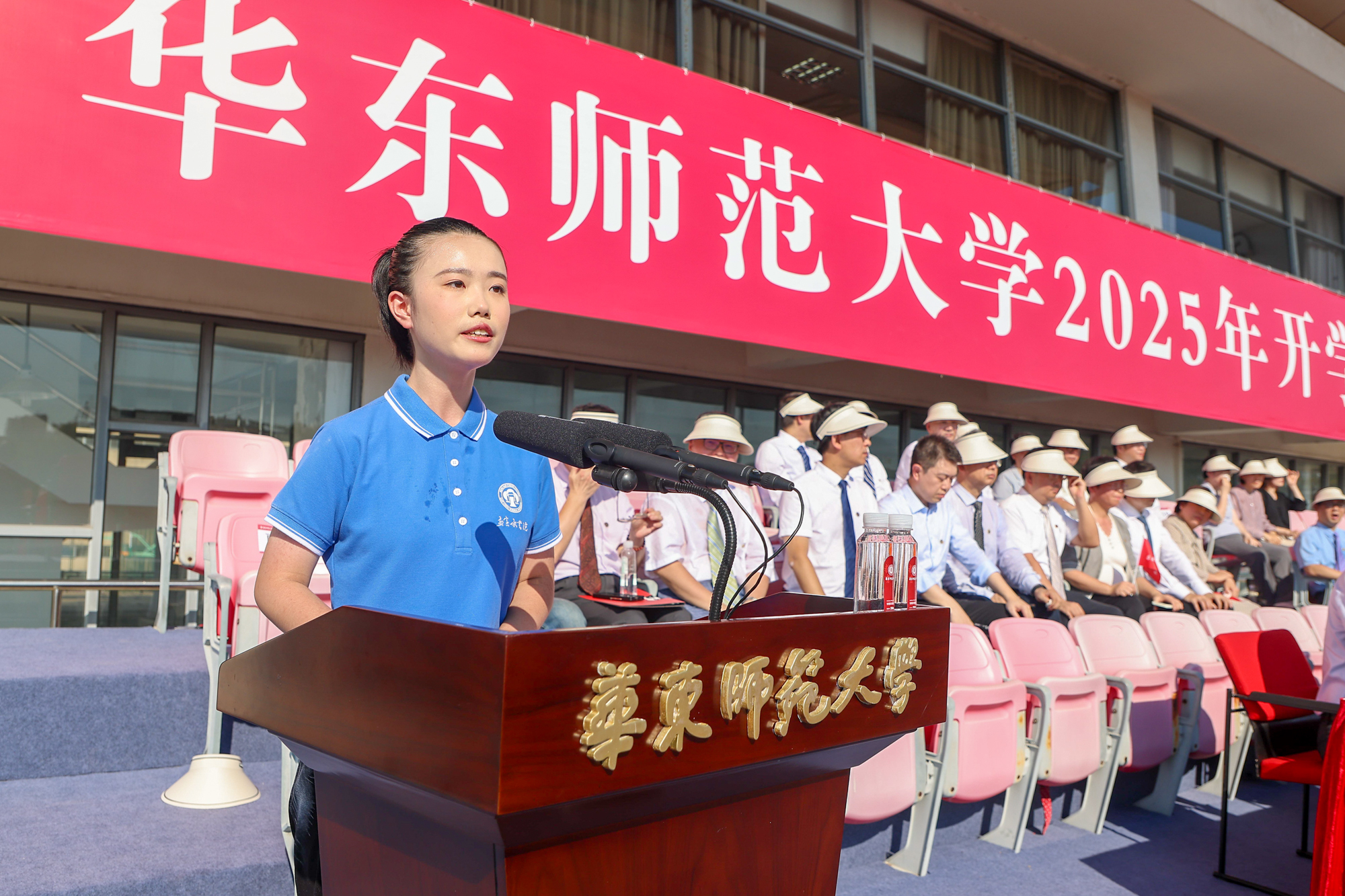 曾获2024年中美青年创客大赛一等奖、国家奖学金、校级“自强之星标兵”等多项荣誉的数据科学与工程学院2023级硕士生张豈明作为老生代表发言。他向新生分享三点体悟:用“热爱”面对挑战,做勇敢的奋斗者;以“厚基”对抗“偏科”,做多维度的成长者;与“数智”相伴共生,做智能时代的共进者。他寄语新生:“在师大敢于扎根,不畏风浪;保持好奇,永远明亮。既能成为更好的自己,更能成为点亮他人、温暖世界的人”。