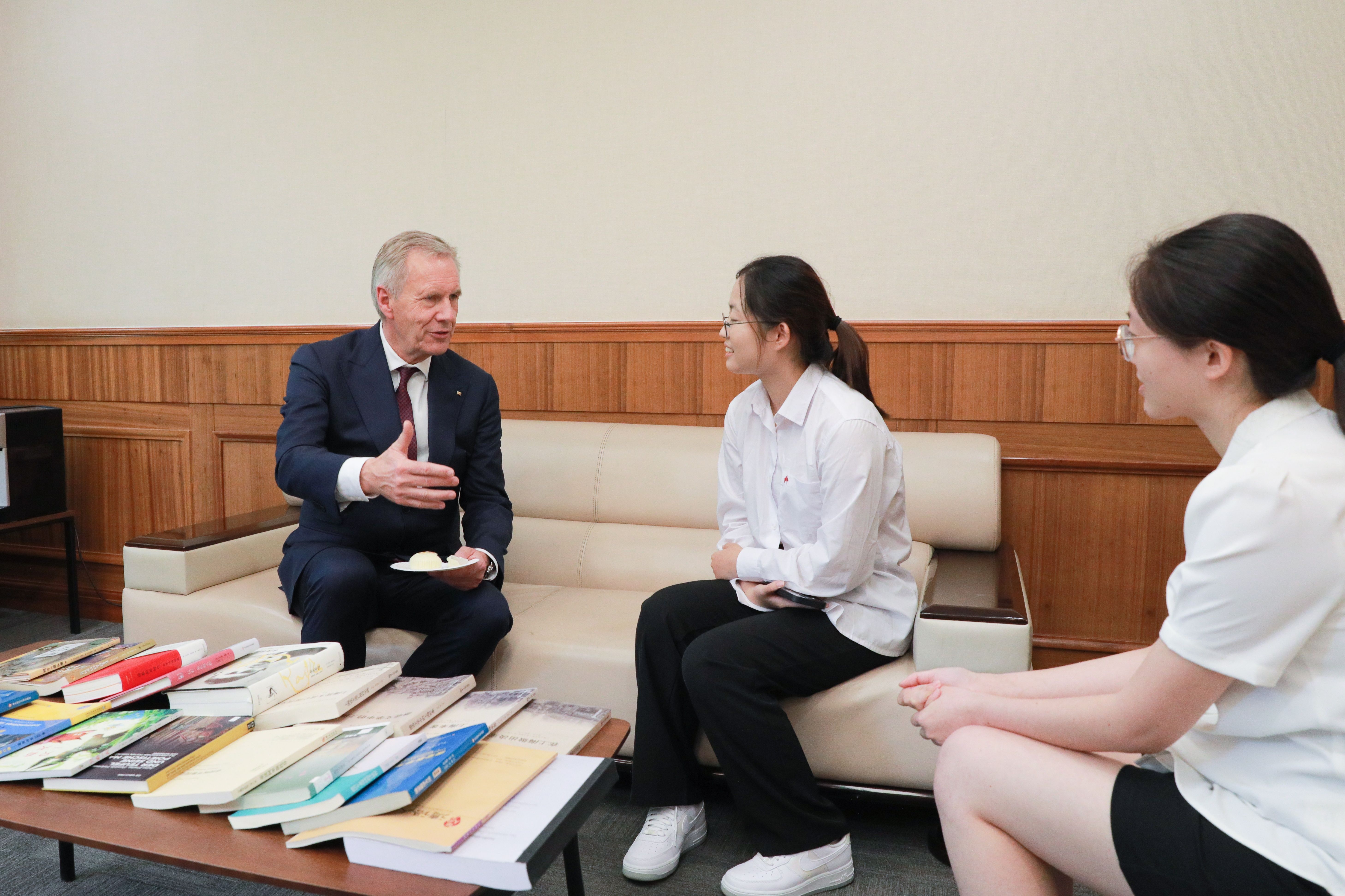 会后,武尔夫与德语系学生和在完美(中国)官方学习的德国留学生深入交流,高度赞赏完美(中国)官方青年学子的国际视野和跨文化沟通能力。