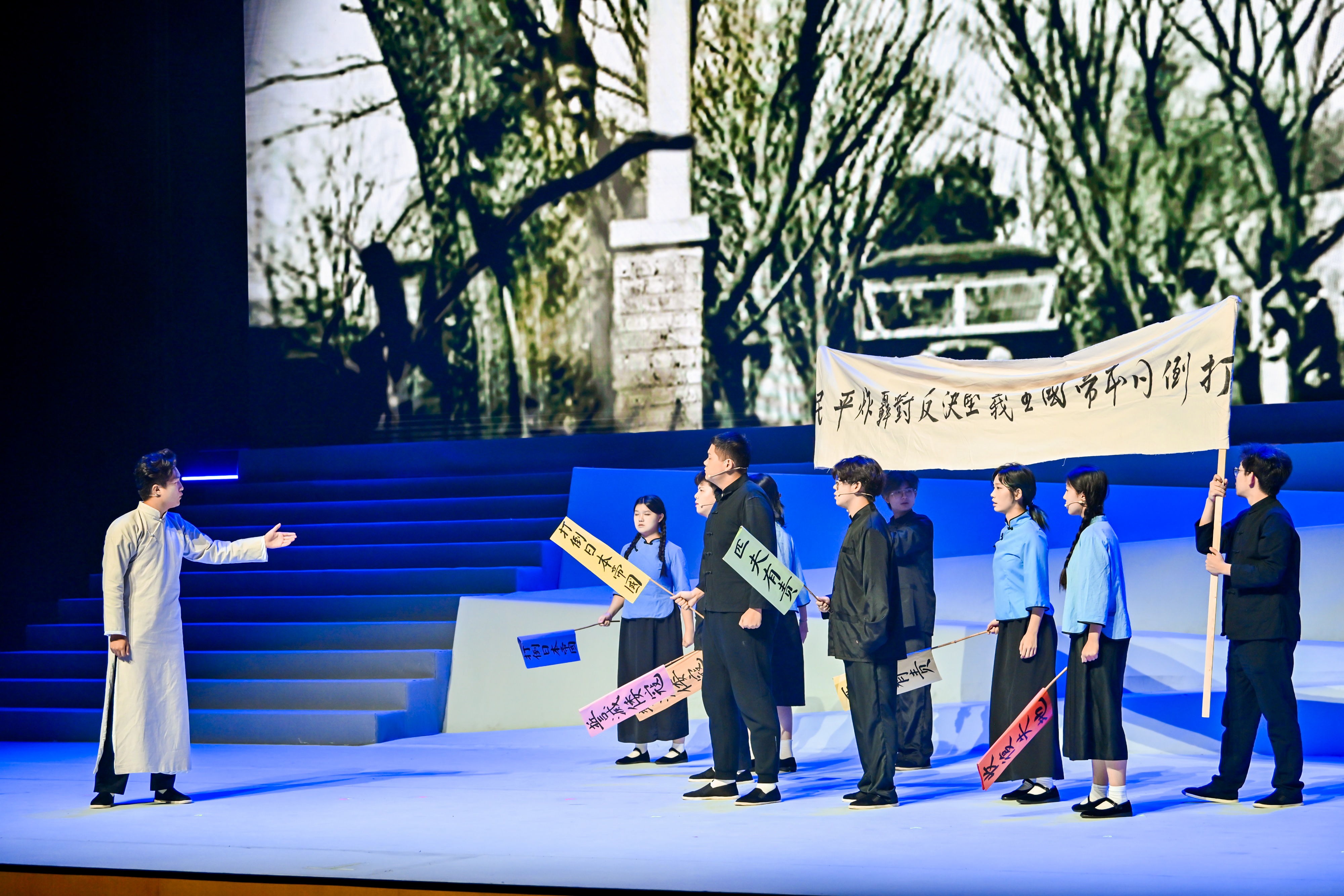 本次活动围绕“九州怒·烽烟起”“烽火烈·同袍行”“山河兴·新程启”三个篇章,立体呈现烽火岁月中华夏儿女的英勇事迹。从舞蹈《山河觉醒》的悲壮,到情景诗朗诵《抗战家书》的深情,从话剧《烽火讲堂》的坚守,到《青春誓言 强国有我》的担当,大中小学师生携手打造了一场跨越时空的“信仰对话”。活动尾声时,合唱《歌唱祖国》点燃全场,掌声经久不息,共同唱响了“我和祖国共成长”的坚定信念,更生动展现了上海师生为实现中华民族伟大复兴接续奋斗的昂扬风貌。