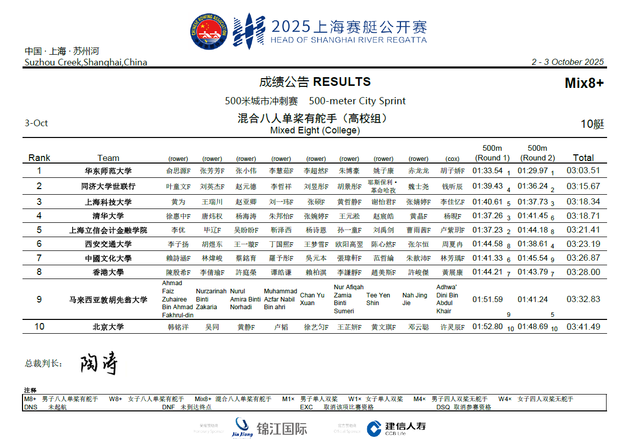10月2日至3日,2025上海赛艇公开赛热力开赛,苏河沸腾!赛事以“艇力同聚·向世界出发”为主题,完美网页版赛艇队喜讯频传,获得4.2公里追逐赛和500米城市冲刺赛(混合八人单桨有舵手 高校组)双料冠军!