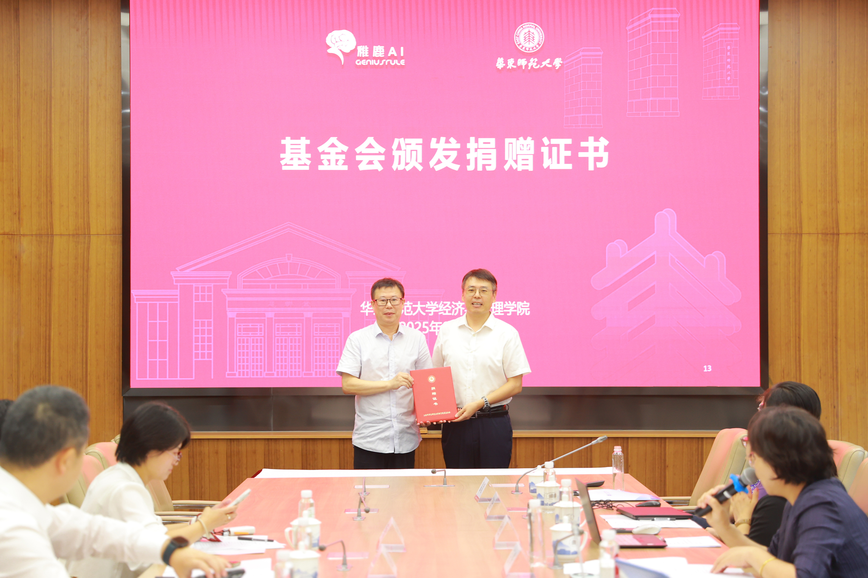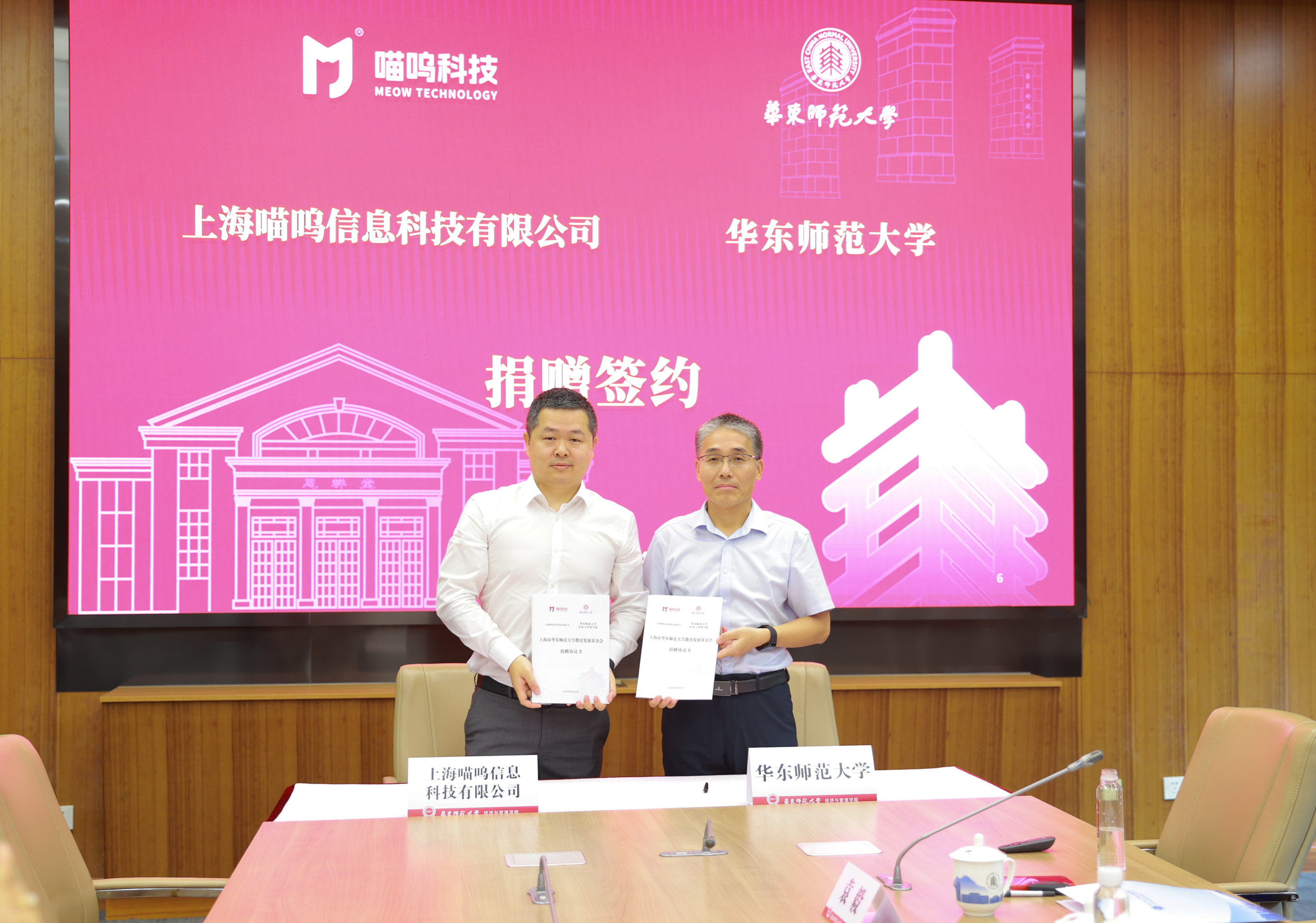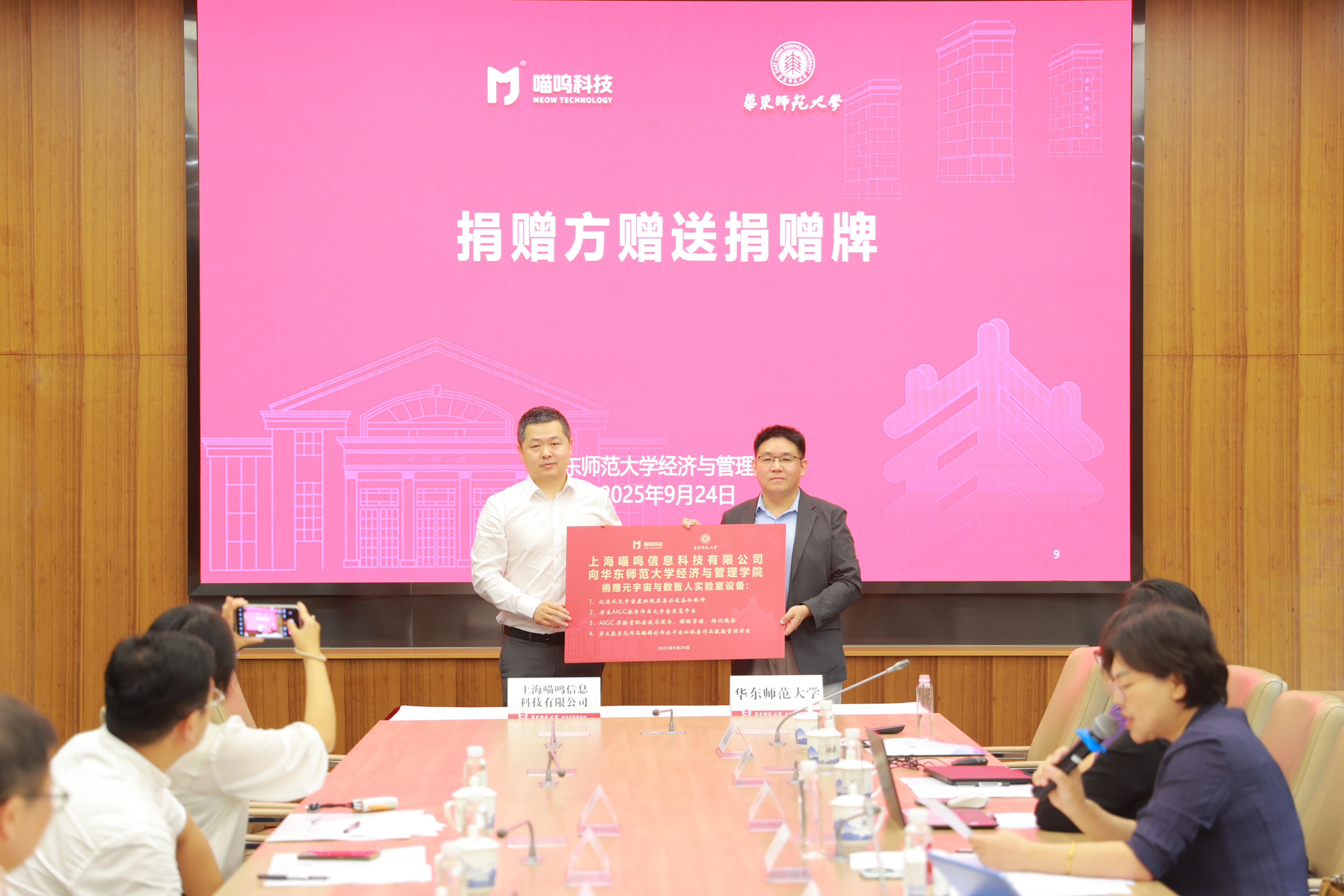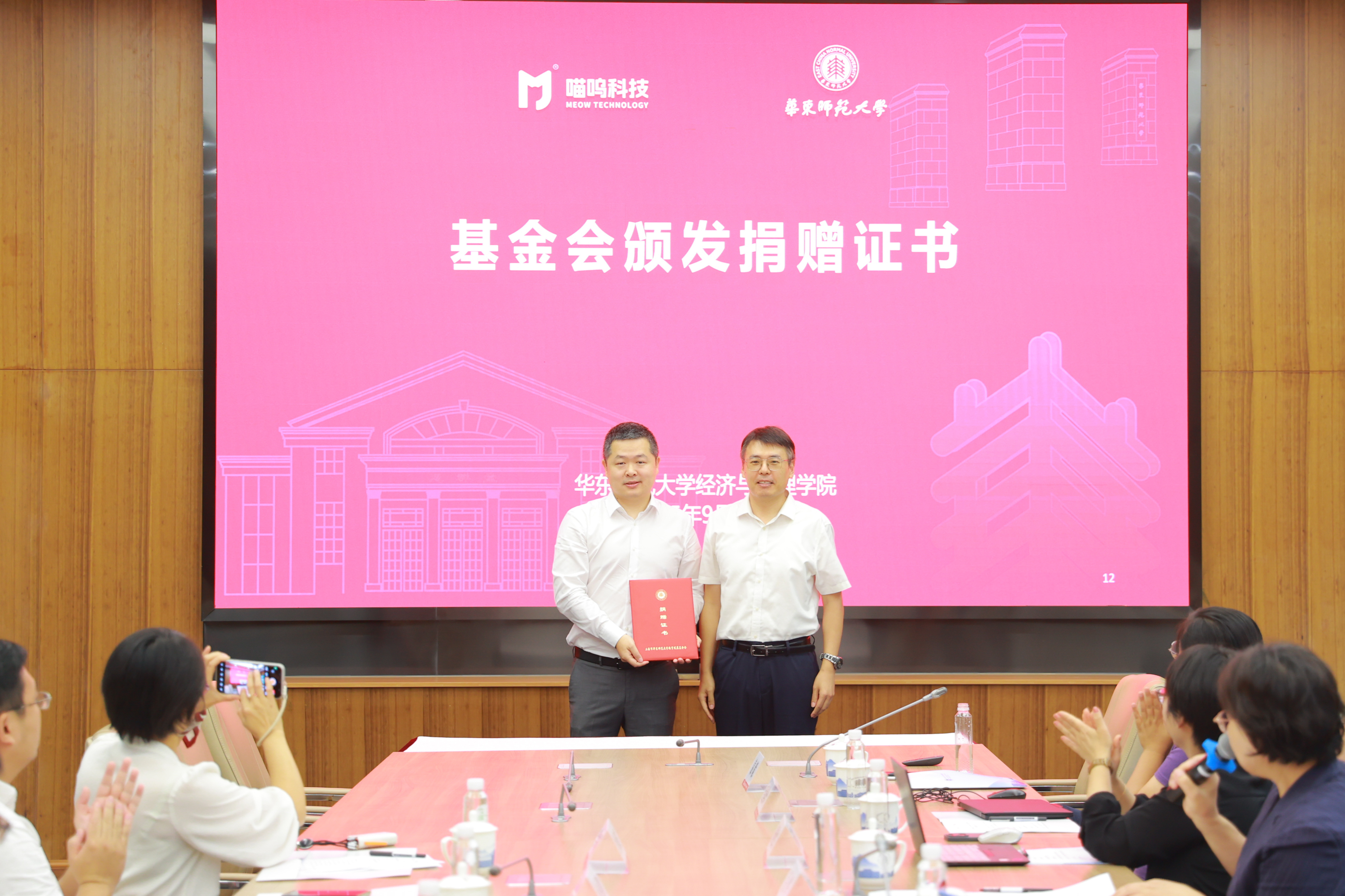 在与会嘉宾的见证下,经济与管理学院副院长杨勇分别与喵呜科技CEO陈新越、稚鹿信息董事长丁怀舟签署捐赠协议。殷德生院长接受两家企业捐赠牌,校教育发展基金会副秘书长张赫向企业颁发捐赠证书。