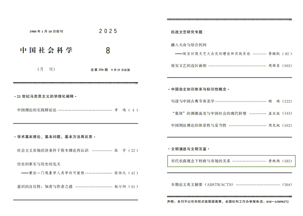 02|黄纯艳教授在《中国社会科学》发文谈宋代农商观念下财政与市场的关系