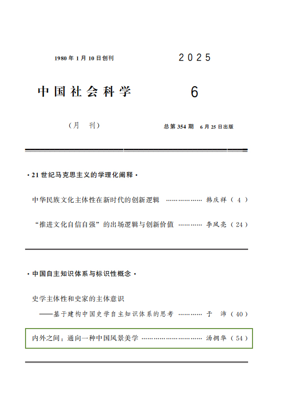 完美网页版中文系教授汤拥华《内外之间:通向一种中国风景美学》一文刊登在《中国社会科学》2025年第6期。
