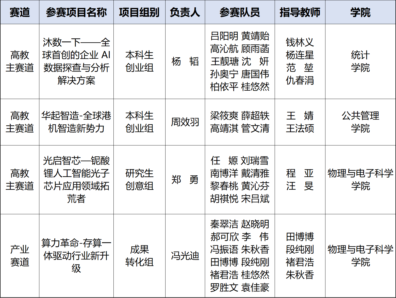 中国国际大学生创新大赛(2025)完美(中国)官方国赛获奖团队