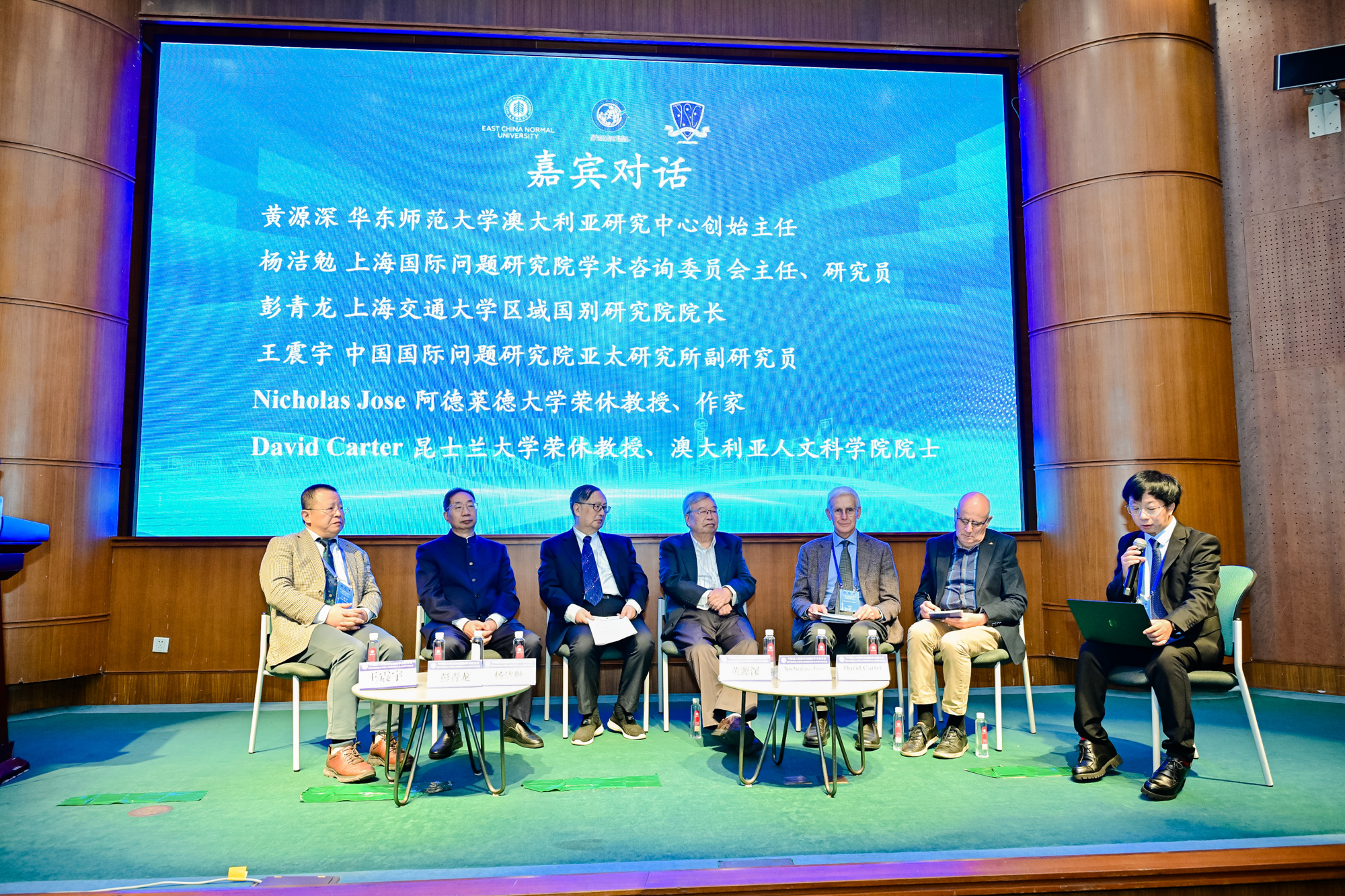 在嘉宾对话环节,澳研中心创始主任黄源深教授、上海国际问题研究院杨洁勉研究员、上海交通大学彭青龙院长、中国国际问题研究院王震宇副研究员,以及澳大利亚阿德莱德大学教授Nicholas Jose、昆士兰大学教授David Carter等中外专家共同交流。这场对话,既有对澳研学科发展历程的深度分析,也有对百年变局下澳研如何服务国家战略、青年澳研人才培养路径等议题的前沿探讨。知识与思想的碰撞不仅为在场师生带来启发,更凝聚了澳研需扎根现实、面向未来的深刻共识。