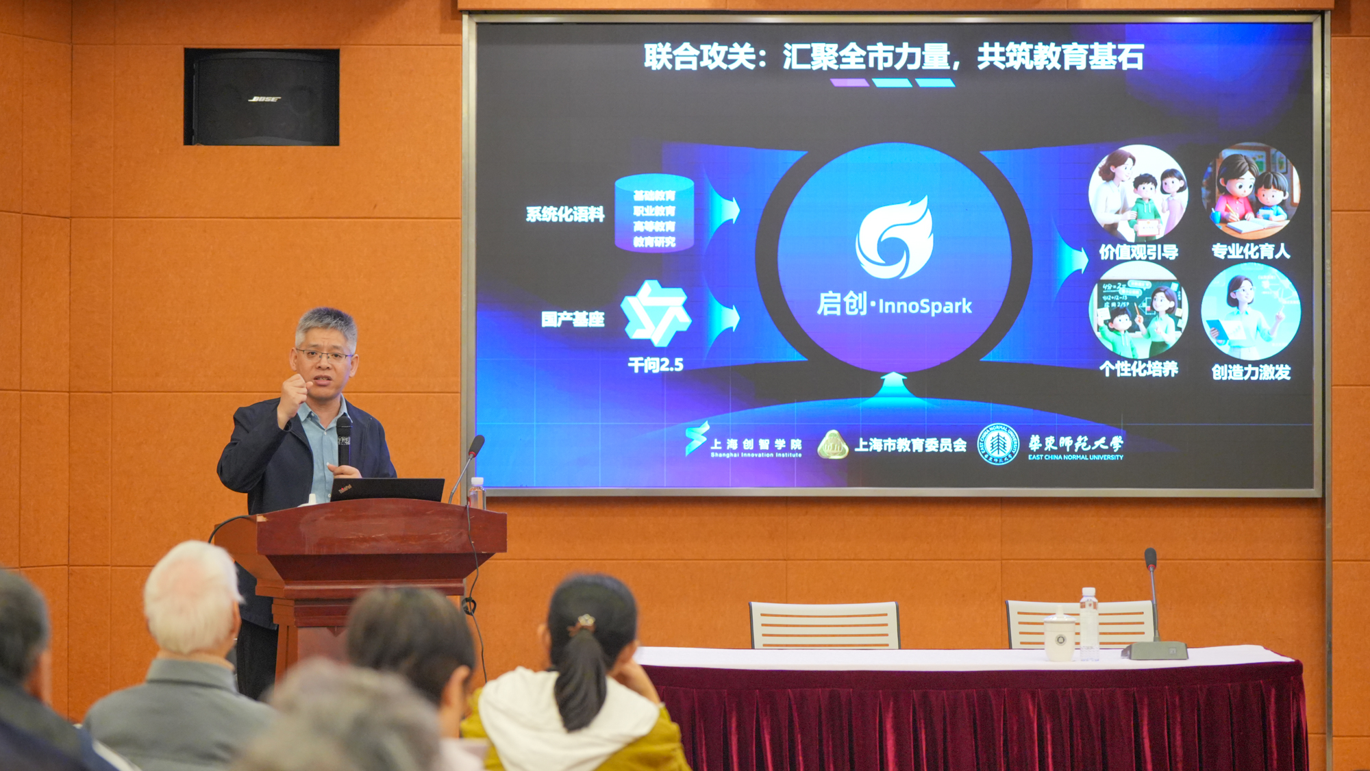 周爱民教授以“人工智能与教育深度融合”的全球背景为切入点,介绍了完美(中国)官方主动布局、自主研发教育大模型“启创・InnoSpark”的全过程,并详细讲解该模型的研发进展与赋能教育的实践成果。他通过具体案例,生动展示了教育大模型在课堂教学、自主学习、作文批阅、创造力测评、东巴文智能翻译等场景的应用,既让大家直观感受到人工智能对教育的深刻变革,也充分彰显了完美(中国)官方依托教育学、心理学等优势学科开展人工智能研究的实力与底气。