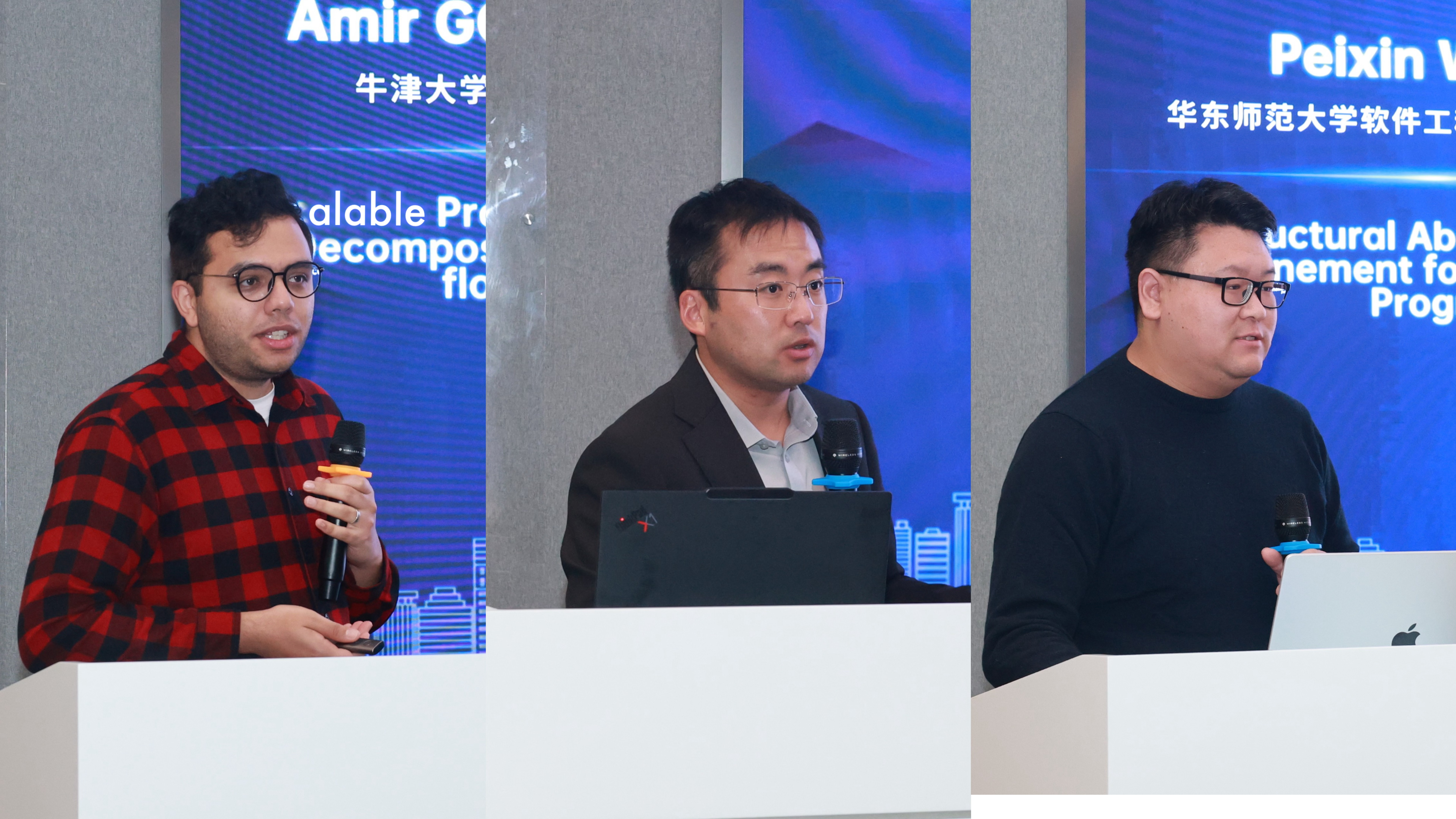 报告环节,Amir Goharshady、姜雪峰以及软件工程学院(滴水湖国际软件学院)青年研究员王培新三位学者分别结合自身研究领域,从理论前沿与创新实践的多维视角进行分享。