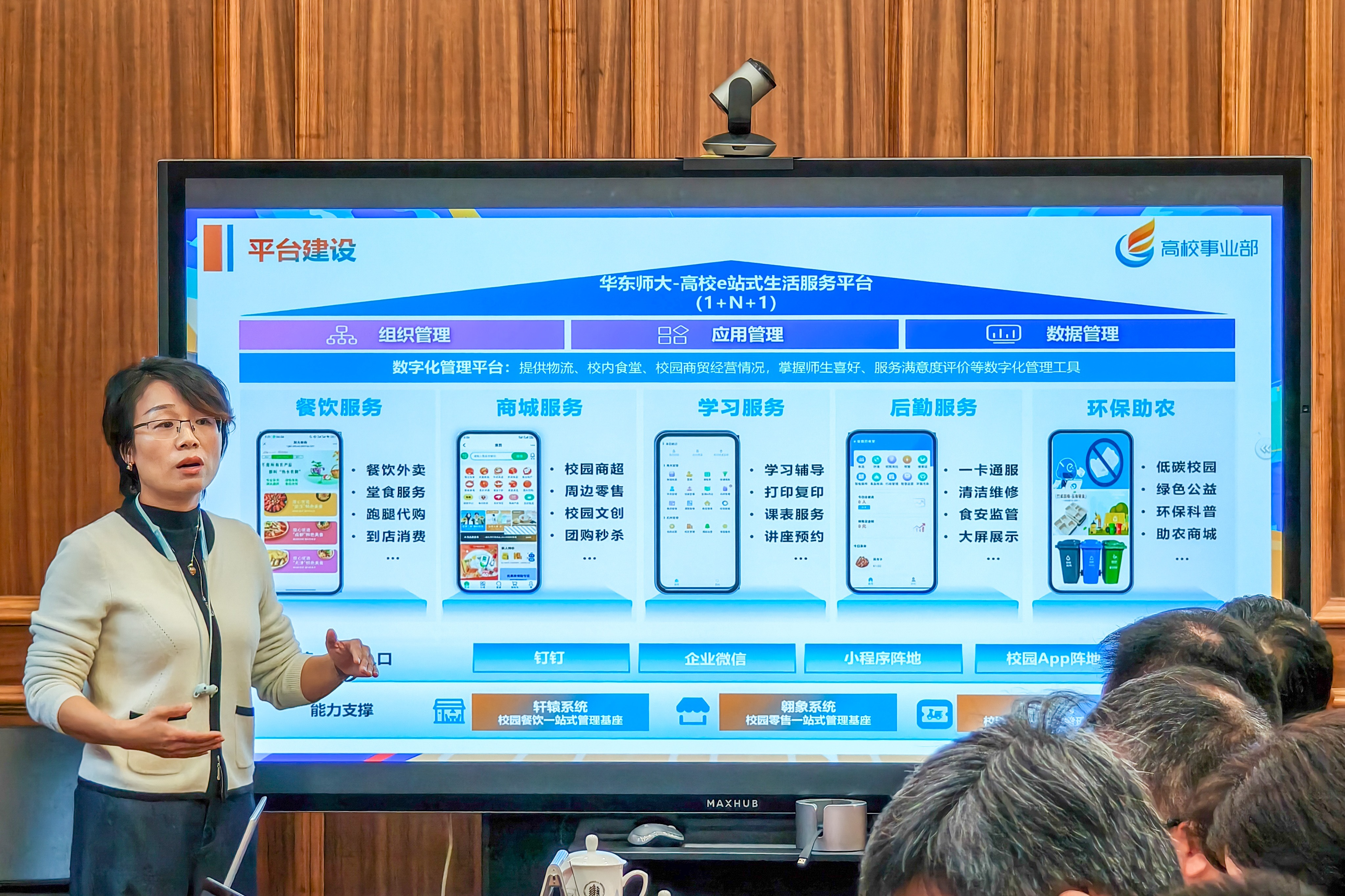 地理科学学院院长王军基于前期沟通情况,介绍了关于数字社区建设的方案设想,面向居民、社区和城市3个层面提出了三大战略升维行动。淘宝闪购饿了么数字社区负责人季彩萍分享了他们在居民社区已经开展的老年助餐等工作,高校东区渠道总监陈一俊介绍了饿了么高校业务模块。