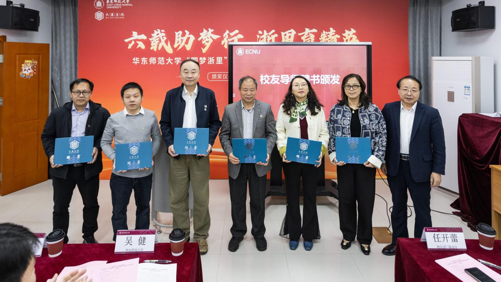 1977级地理系校友祝炜平、1977级中文系校友董康定、1995级国际政治与经济系校友祝毅、1997级历史系校友王莉、2004级地理系校友黄歌颂、2010级环境科学系校友李建辉、2017级职业教育与成人教育研究所校友瞿连贵、1992级华师大二附中校友李贝尔等浙江各地校友代表,以及国家级非遗传承人、梅庵琴派第四代传人余建文出席活动。校党委常委、副校长吴健,党委学生(研究生)工作部(处)长赵健,校友会、基金会秘书长任开蕾,大夏书院院长、心理与认知科学学院教授庞维国,学校相关职能部门及院系代表,浙江学生代表等参加活动。大夏书院副院长王郦玉主持仪式。