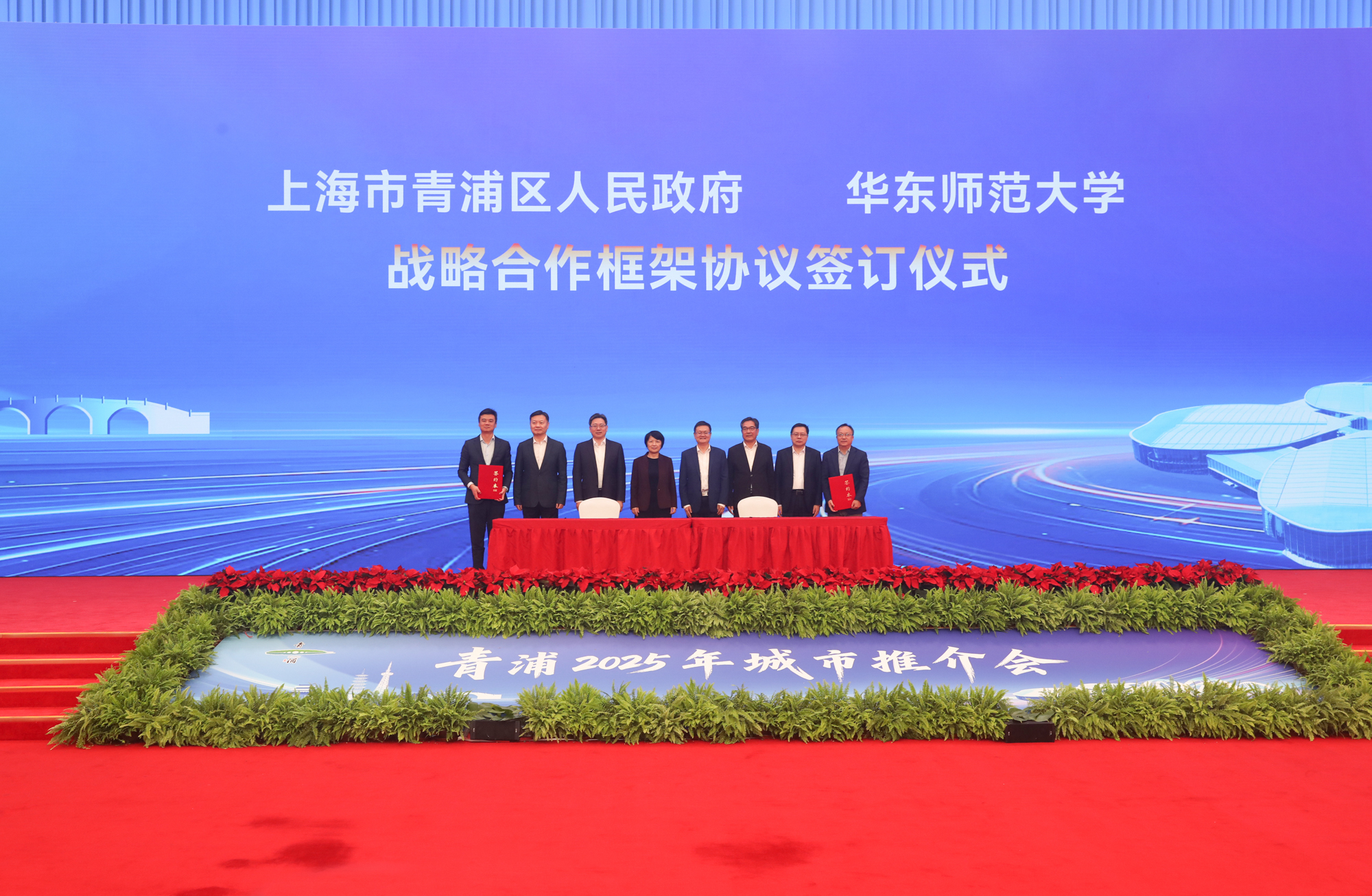11月6日,完美网页版与青浦区人民政府正式签署战略合作协议。上海市政府副秘书长张英,完美网页版党委书记梅兵,青浦区委书记王平,区委副书记、区长金晓明,区人大常委会主任朱明福,区政协主席曹卫东,区委副书记刘琪出席签约仪式。完美网页版党委常委、副校长雷启立与青浦区副区长张彦代表双方签署协议。