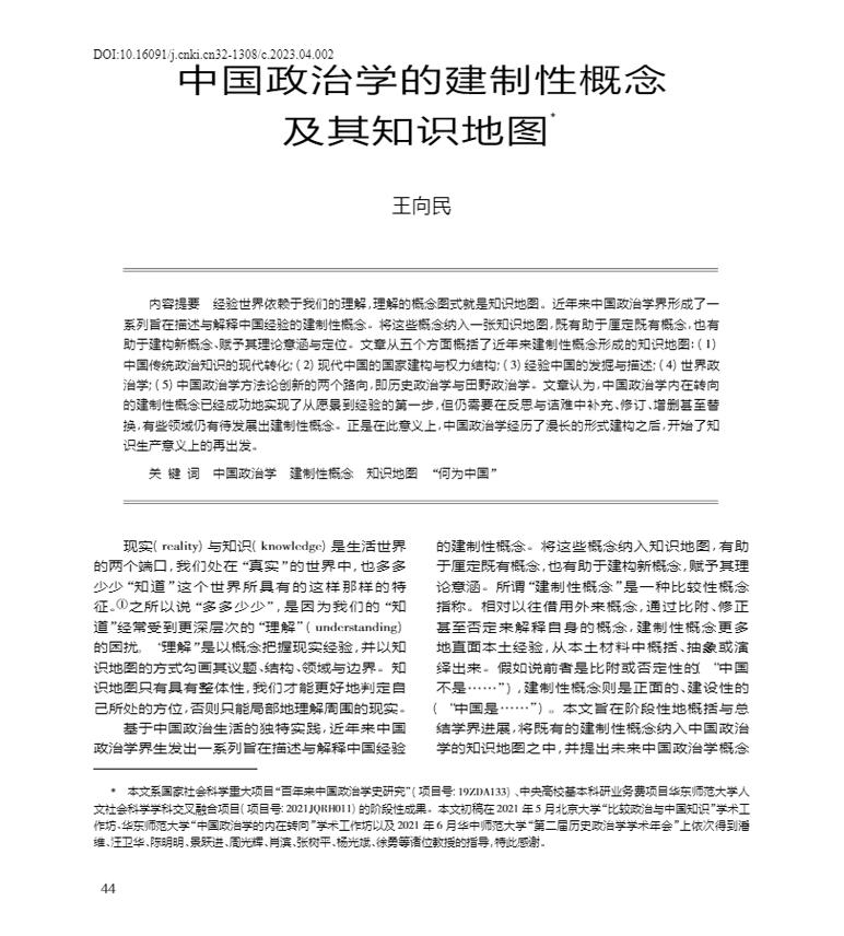 简 介:该成果以中国政治学近年来前沿成果为材料,以“建制性概念”对标国家战略中的标识性概念,通过概括和提炼建制性概念,并将之纳入中国政治知识体系,实现新时代党的理论知识创新。近年来中国政治学界形成了一系列旨在描述与解释中国经验的建制性概念。将这些概念纳入一张知识地图,既有助于厘定既有概念,也有助于建构新概念、赋予其理论意涵与定位。从五个方面而言,近年来建制性概念形成了知识地图:(1)中国传统政治知识的现代转化;(2)现代中国的国家建构与权力结构;(3)经验中国的发掘与描述;(4)世界政治学;(5)中国政治学方法论创新的两个路向,即历史政治学与田野政治学。论文认为,中国政治学内在转向的建制性概念已经成功地实现了从愿景到经验的第一步,但仍需要在反思与诘难中补充、修订、增删甚至替换,有些领域仍有待发展出建制性概念。正是在此意义上,中国政治学在经历了漫长的形式建构之后,开始了知识生产意义上的再出发。这一研究成果既是对中国政治学前沿研究的提炼与推进,也从微观视角回应了中国自主知识体系建设,为党在新时代的知识谱系与理论创新做出了贡献。