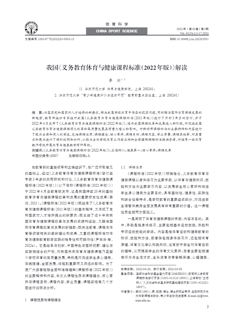 《我国<义务教育体育与健康课程标准(2022年版)>解读》