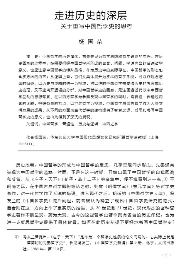 简 介:中国哲学的历史演化,首先表现为哲学思想和哲学理论的变迁。在历史回溯的过程中,既需要把握中国哲学所形成的名言、问题、学说内含的普遍哲学意义,也应注意中国哲学的特殊品格。作为历史中的实际存在,中国哲学的形态包含多方面的内容;从逻辑上看,它们又具体展开为多样的哲学系统,可以作观念层面的归类。以历史与逻辑的统一为视域,对以往的中国哲学需要作历史的考察或历史梳理,又不应离开逻辑的分析。对中国哲学史的回溯,无法回避近代以来中西哲学互动的思想背景。在以西方哲学为参照反观中国哲学的同时,需要进一步通过两者的比较,把握各自的特点。以世界哲学为视域,中国哲学与西方哲学作为人类文明发展的成果,从不同的方面为当代哲学的建构提供了智慧之源,反思和书写中国哲学史的意义,也由此得到了深沉的展现。