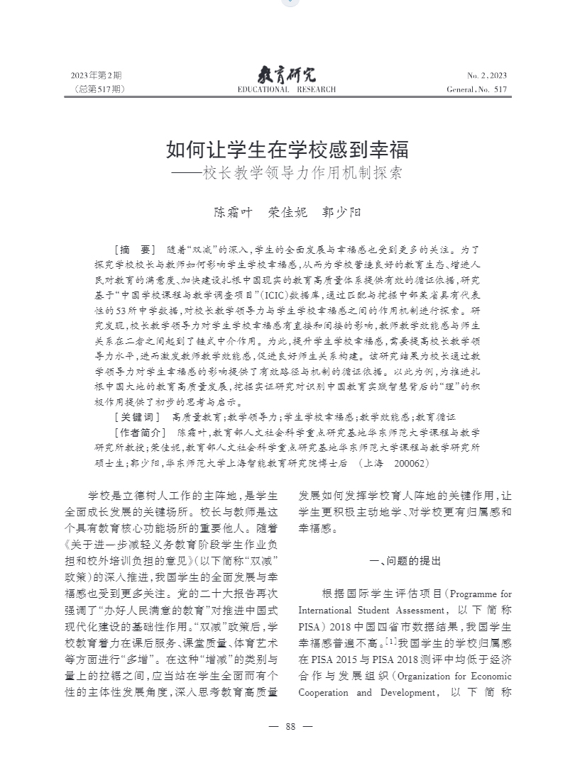 《如何让学生在学校感到幸福——校长教学领导力作用机制探索》