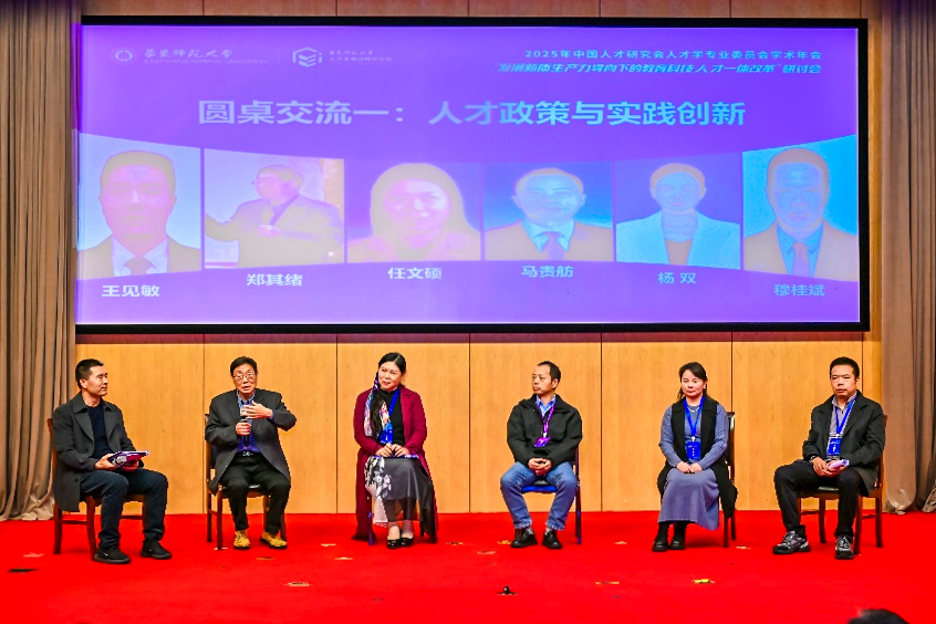 第一场圆桌交流以“人才政策与实践创新”为主题,由贵州财经大学、贵州人才研究所所长王见敏主持。中国石油大学(华东)原党委书记、中国人才研究会原副会长郑其绪;中国人事科学研究院绩效管理和考核奖惩研究室主任、研究员,中国人力资源开发研究会人才测评专业委员会副会长任文硕;湖南省社会科学院农村发展研究所副所长、研究员、人才资源研究中心主任马贵舫;海南自由贸易港人才发展研究院副院长、《自贸港人才月刊(内刊)》主编杨双;北京人才发展战略研究院特聘专家,河北大学管理学院、发展与教育心理学研究所所长穆桂斌,共同参与圆桌讨论。讨论中,与谈专家分享了前沿案例与独到观点,内容覆盖人才引进、评价体系创新与地方实践探索。与会专家洞察到,人才政策的创新范式正经历一场系统性变革,其核心正从单一政策执行,迈向构建系统化、生态化的综合管理体系。这一转变在如何有效激发人才活力、优化服务供给、完善评估与引导机制等核心命题上,提供了深刻的实践启示与发展路径。