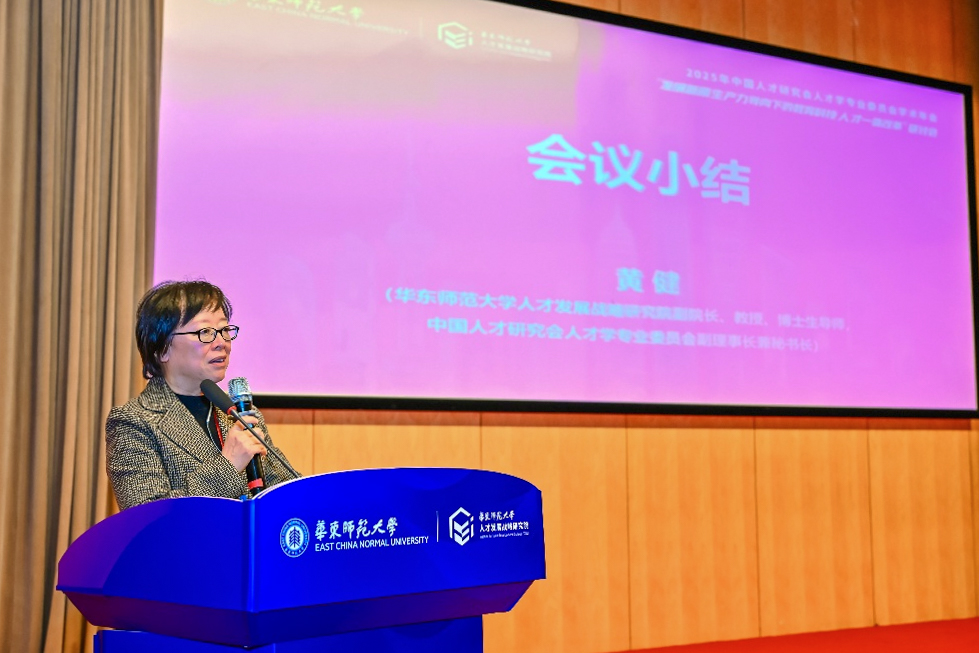 中国人才研究会人才学专业委员会副理事长兼秘书长黄健作会议小结。她对此次年会的成功举办表示祝贺,并对所有与会专家学者的精彩分享和辛勤付出表示感谢,高度评价了会议在推动人才理论创新与实践发展方面取得的丰硕成果。