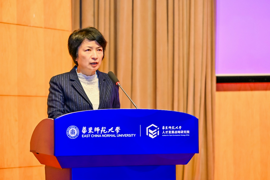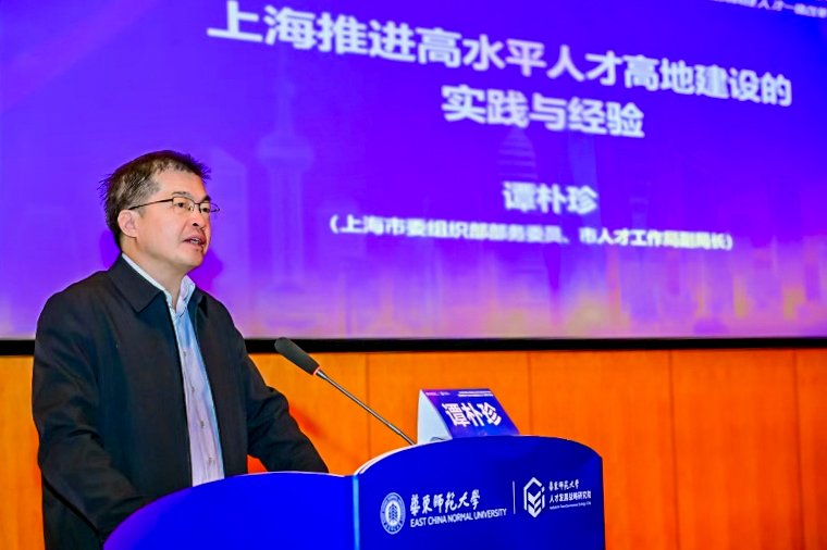 上海市委组织部部务委员、市人才工作局副局长谭朴珍作主旨报告