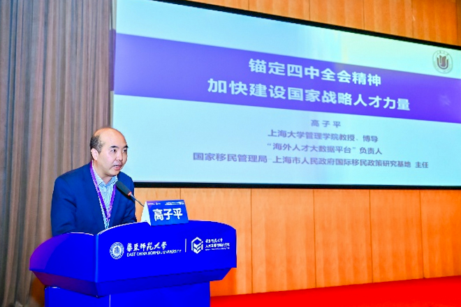 上海大学“海外人才大数据平台”负责人、国家移民管理局-上海市人民政府国际移民政策研究基地主任高子平作主旨报告