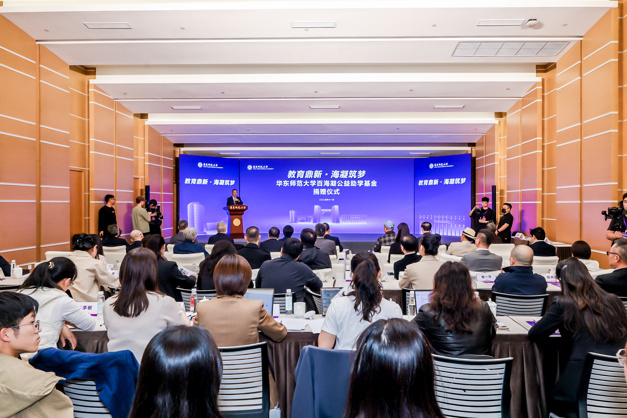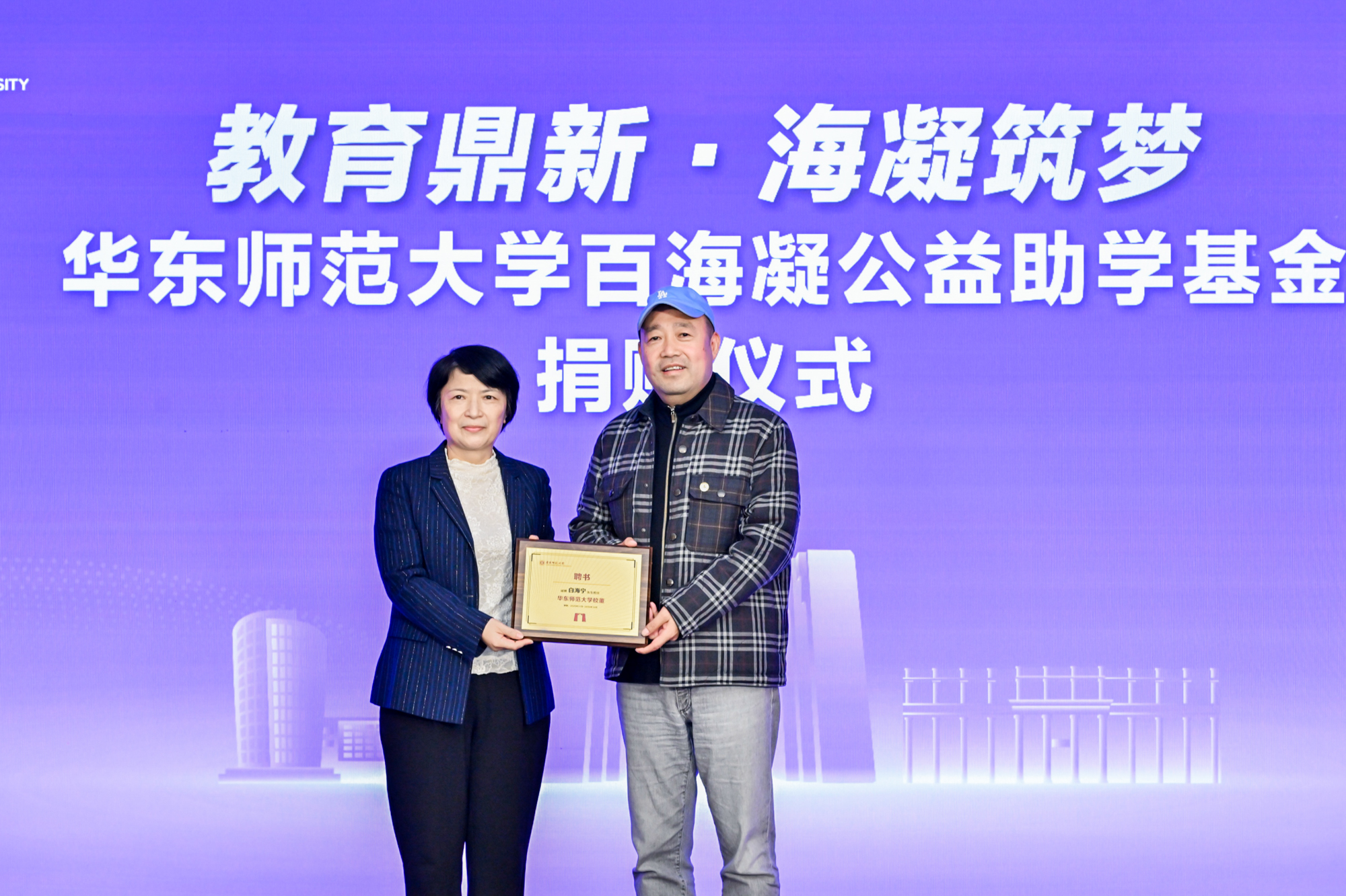 学生资助管理中心主任王新燕介绍了学校资助育人体系建设新进展。她表示,此次捐赠将为“保障+实践+发展”三位一体的资助育人模式提供关键支持,全面提升学校的育人效能。学校将用好百海凝公益助学基金的善款,聚焦家庭经济困难且品学兼优的师大学生,为他们提供更有力的支持和激励。