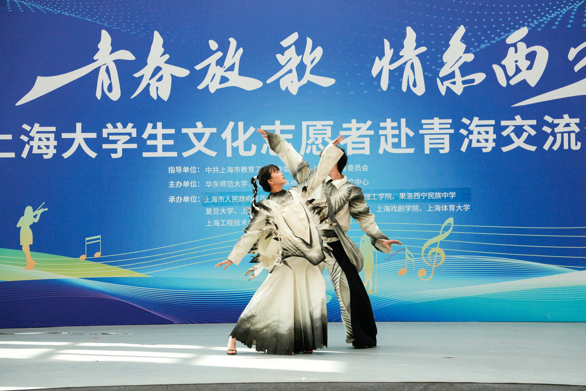 以青春汇活力,以文化促交融,上海大学生文化志愿者团队在西宁举行了2场文艺汇演。上海9所学校的师生和青海民族大学、青海理工学院、果洛西宁民族中学学子同台演出,戏曲、舞蹈、声乐、服装秀、木偶戏、健美操、武术表演、花样跳绳等各种节目精彩纷呈,生动体现了文化交流的多元化和创新性。