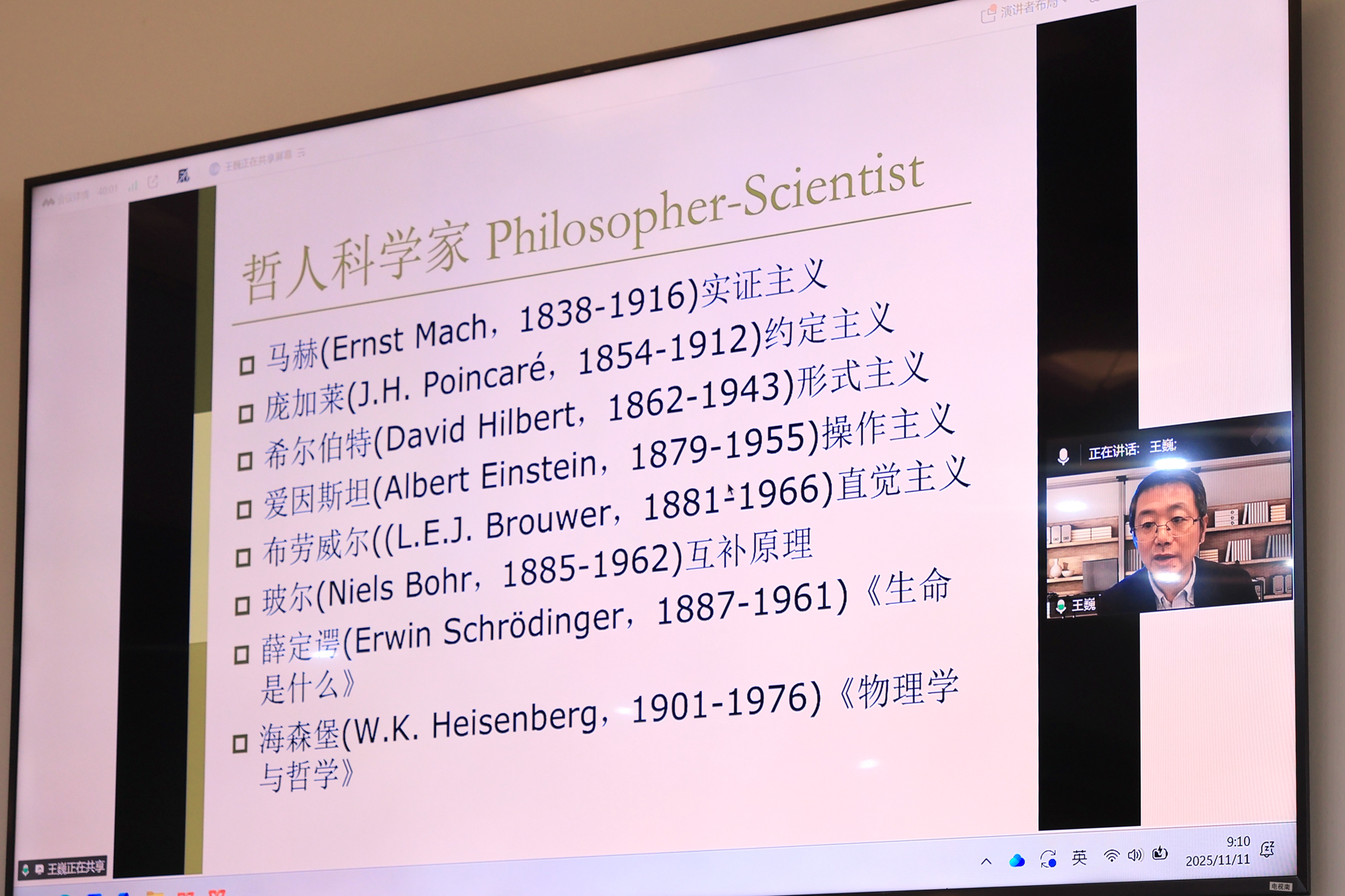 清华大学科学史系-哲学系双聘教授、中国自然辩证法研究会副理事长、科学哲学专业委员会主任王巍在致辞中回顾了科学哲学的历史,探讨了科学家精神对哲学发展的感召作用,呼吁科技教育与人文教育深度融合。