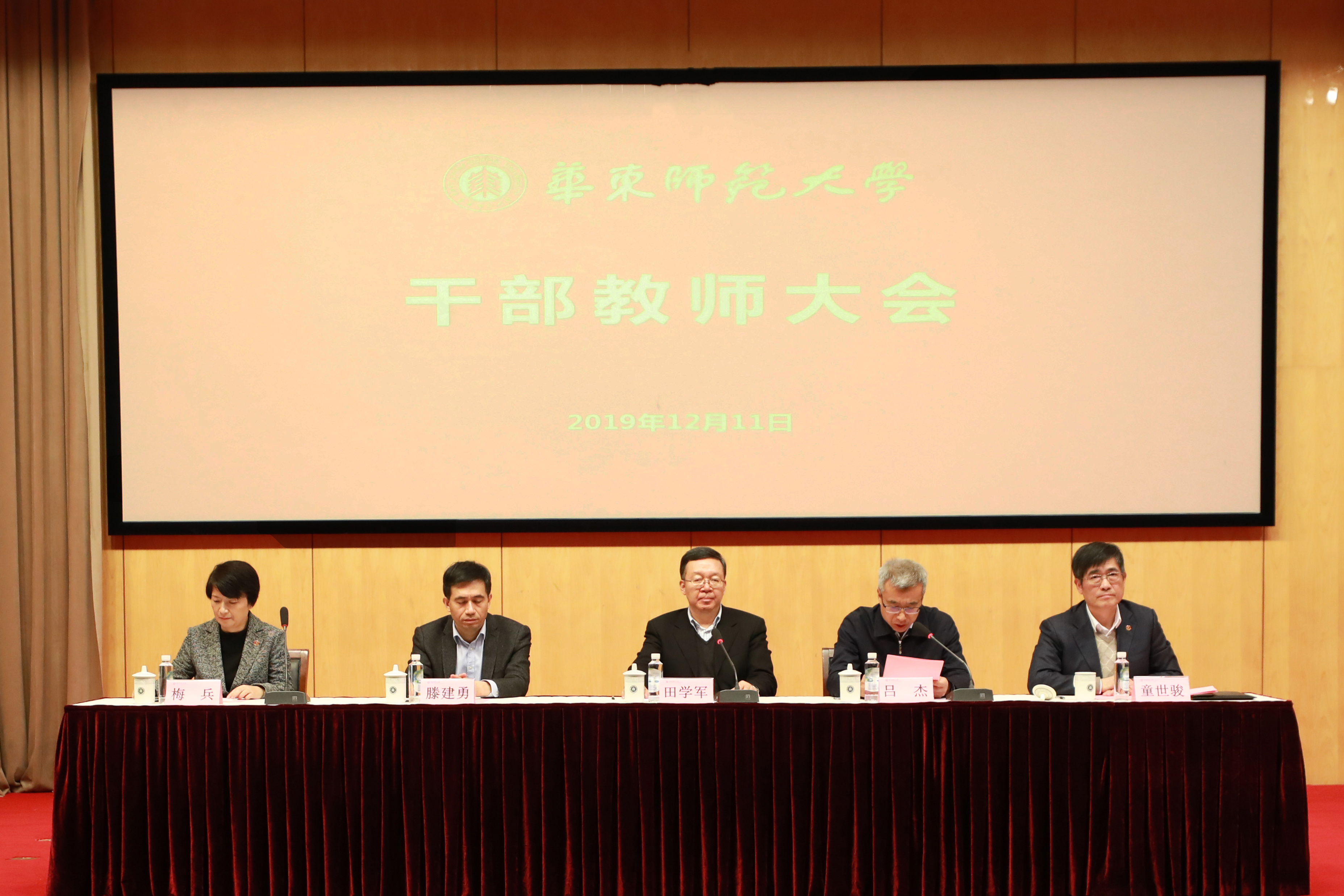 12月11日下午,完美网页版在中山北路校区科学会堂召开全校干部教师大会。教育部党组成员、副部长田学军,上海市教卫工作党委副书记滕建勇出席会议。完美网页版校领导班子成员、老领导、校党委委员、校纪委委员、全校中层干部、教师代表等参加了会议。会议由教育部人事司副司长、一级巡视员吕杰主持。