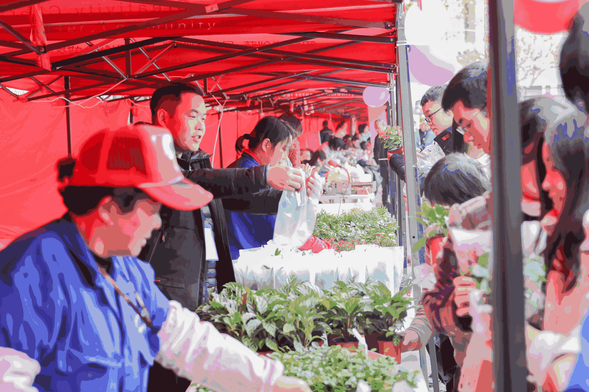 而人气最足最拥挤的摊位,还数校园环境管理中心带来的宣传垃圾分类、传播绿植养护知识,免费送领小盆栽的活动。作为传统项目,今年校园环境管理中心将垃圾分类知识融入活动中,答对题目方能领取绿植,当天近十个品种合计1200余份小盆栽分发给了师生,师生们拿着领取到的小绿植在活动展板前纷纷留下了灿烂的笑容。