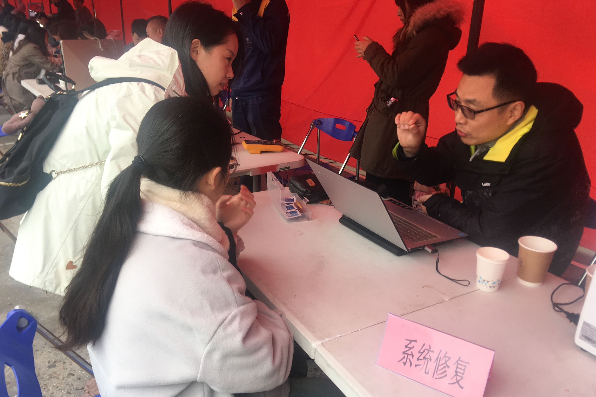 两校区宿舍与教学楼服务中心带来了缝补衣物、拍摄证件照、电脑修复这三项免费服务,当天为师生缝补衣服54件、拍摄证件照62人、电脑系统维修及网络使用咨询6人。