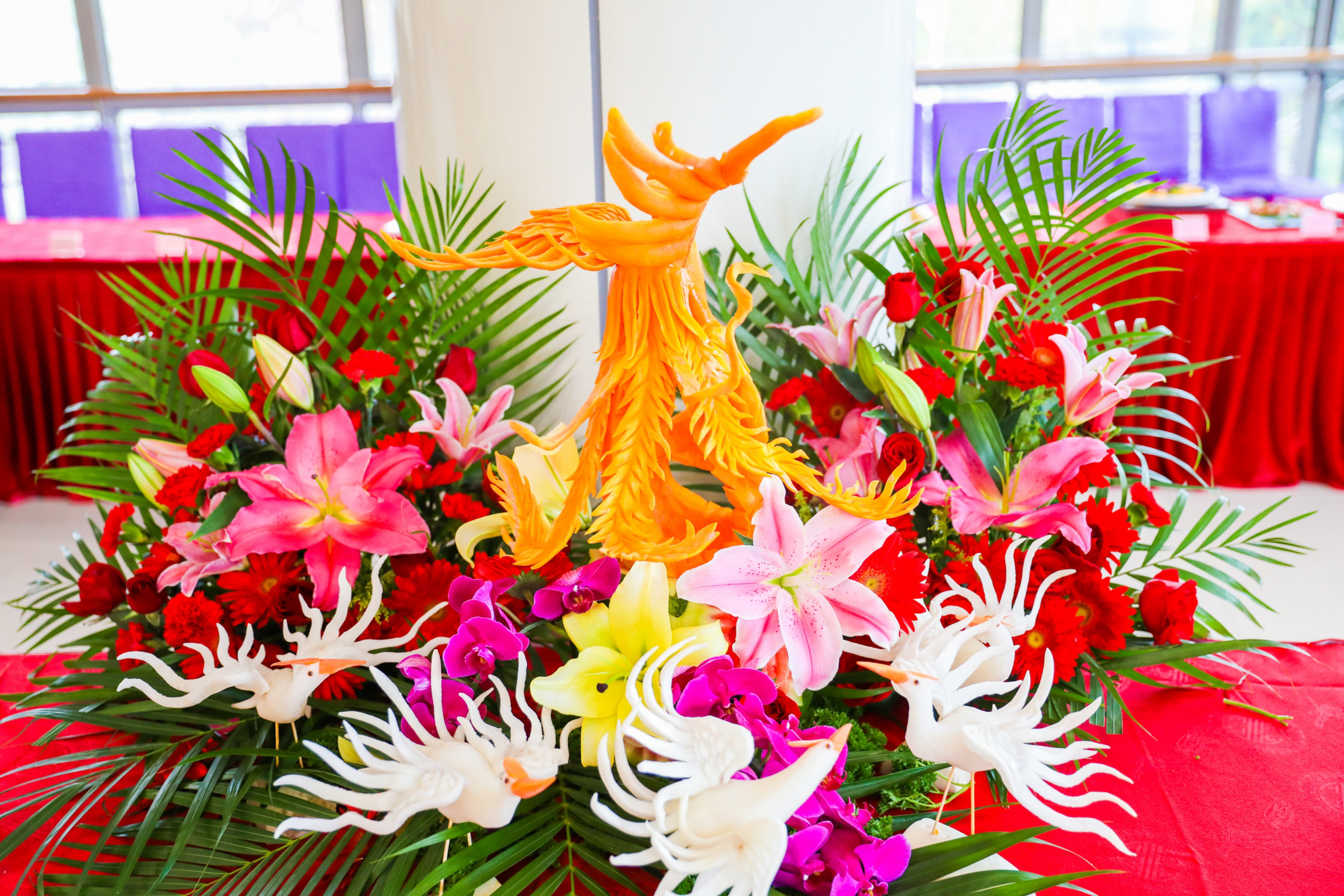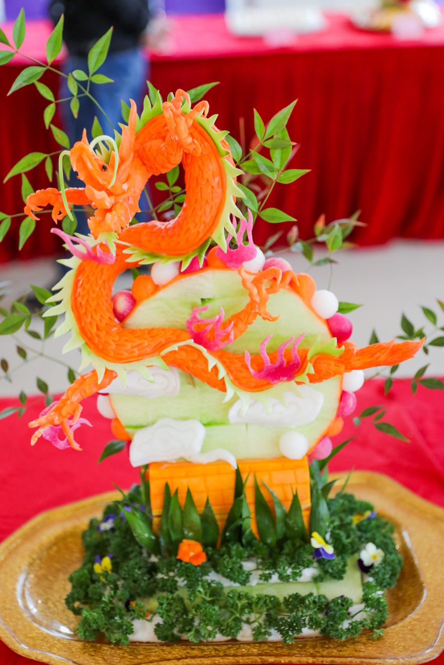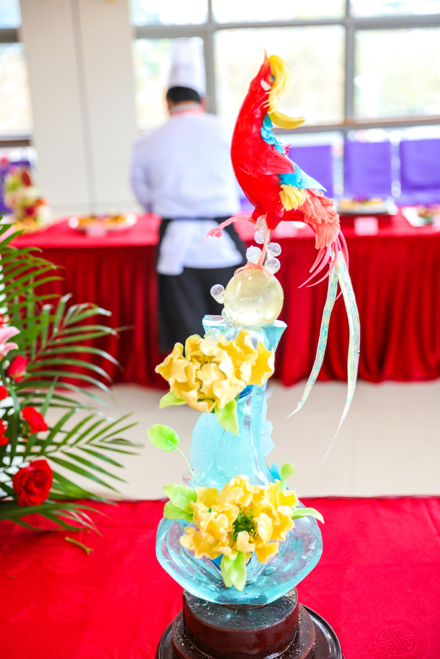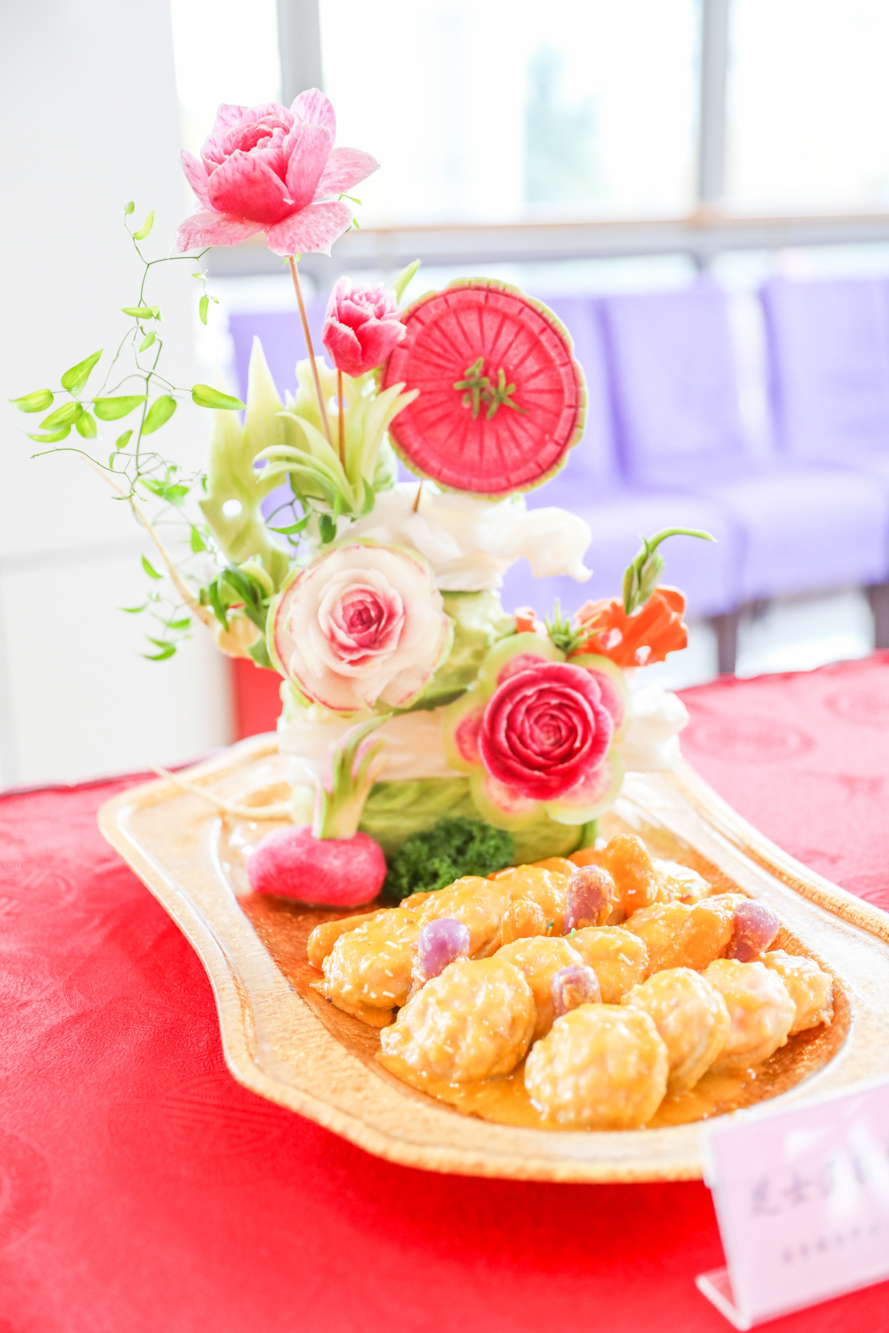 膳食服务中心(1)(2),上海中快餐饮管理有限公司,上海秋林阁饮食服务有限责任公司,上海象郡餐饮管理有限公司等5家校内餐饮服务单位参加了菜肴品种的展示,参展作品共有15道红案、15道白案、5个食品雕刻作品。