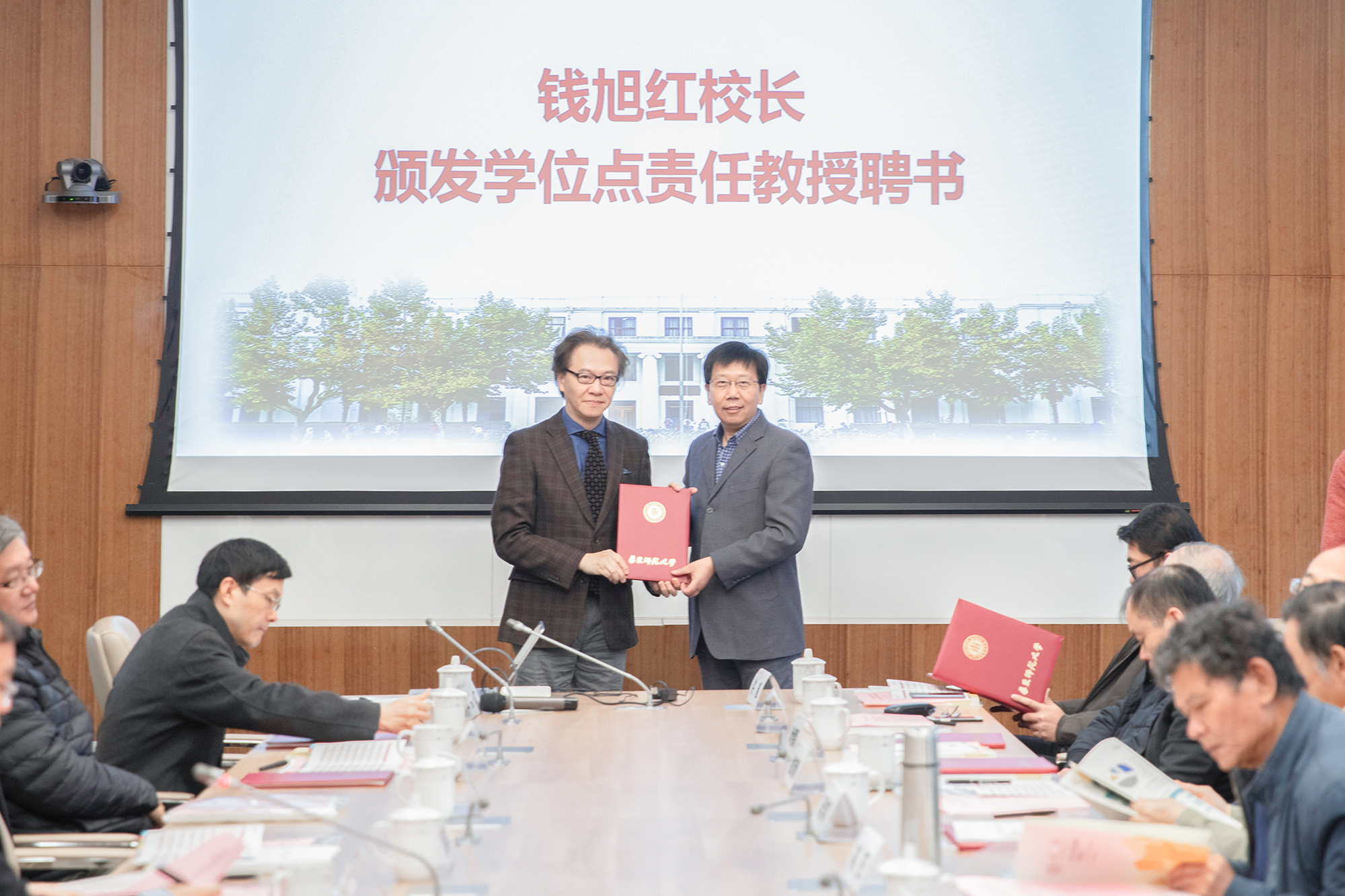 周傲英宣读了学校关于学位点责任教授的聘任通知,哲学系刘梁剑等32位教师被聘任为我校学位点责任教授。钱旭红向到会的学位点责任教授逐一颁发聘书并合影留念。