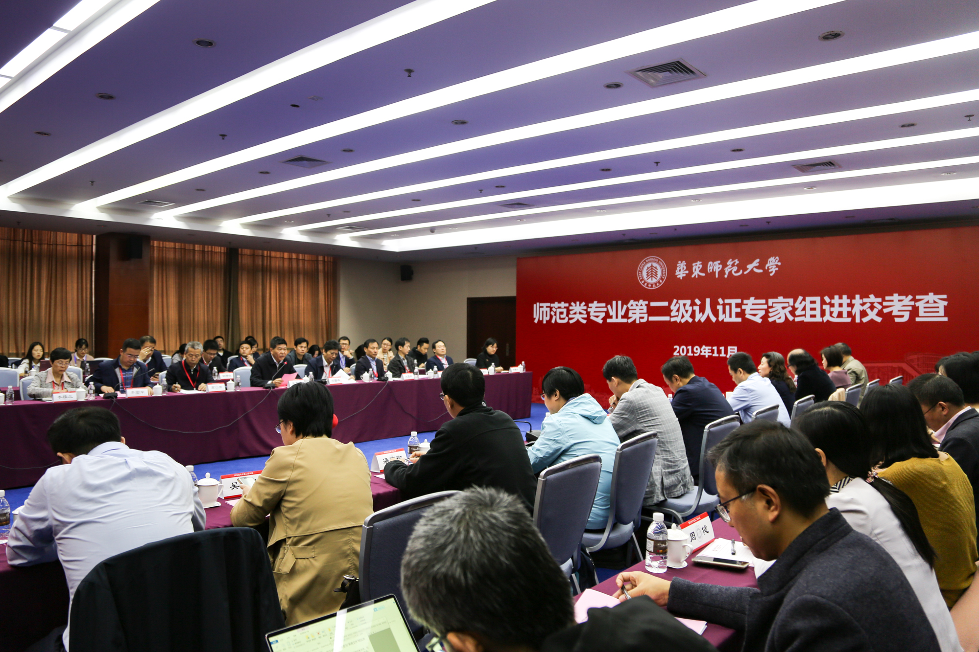 11月11日,专家组见面会在闵行校区教师之家三楼报告厅举行。专家组全体成员,校党委书记童世骏,副校长戴立益,学校办公室、党委宣传部、学生工作部、教务处、招生办公室、人事处、财务处、图书馆、孟宪承书院、教师教育学院等相关职能部门负责人,物理学、数学与应用数学、美术学所在学院党政班子成员及专业负责人、专业教师代表,其他师范类专业所在学院的院长、教学副院长、骨干教师等80余人出席会议。会议由联合认证专家组组长张志勇主持。