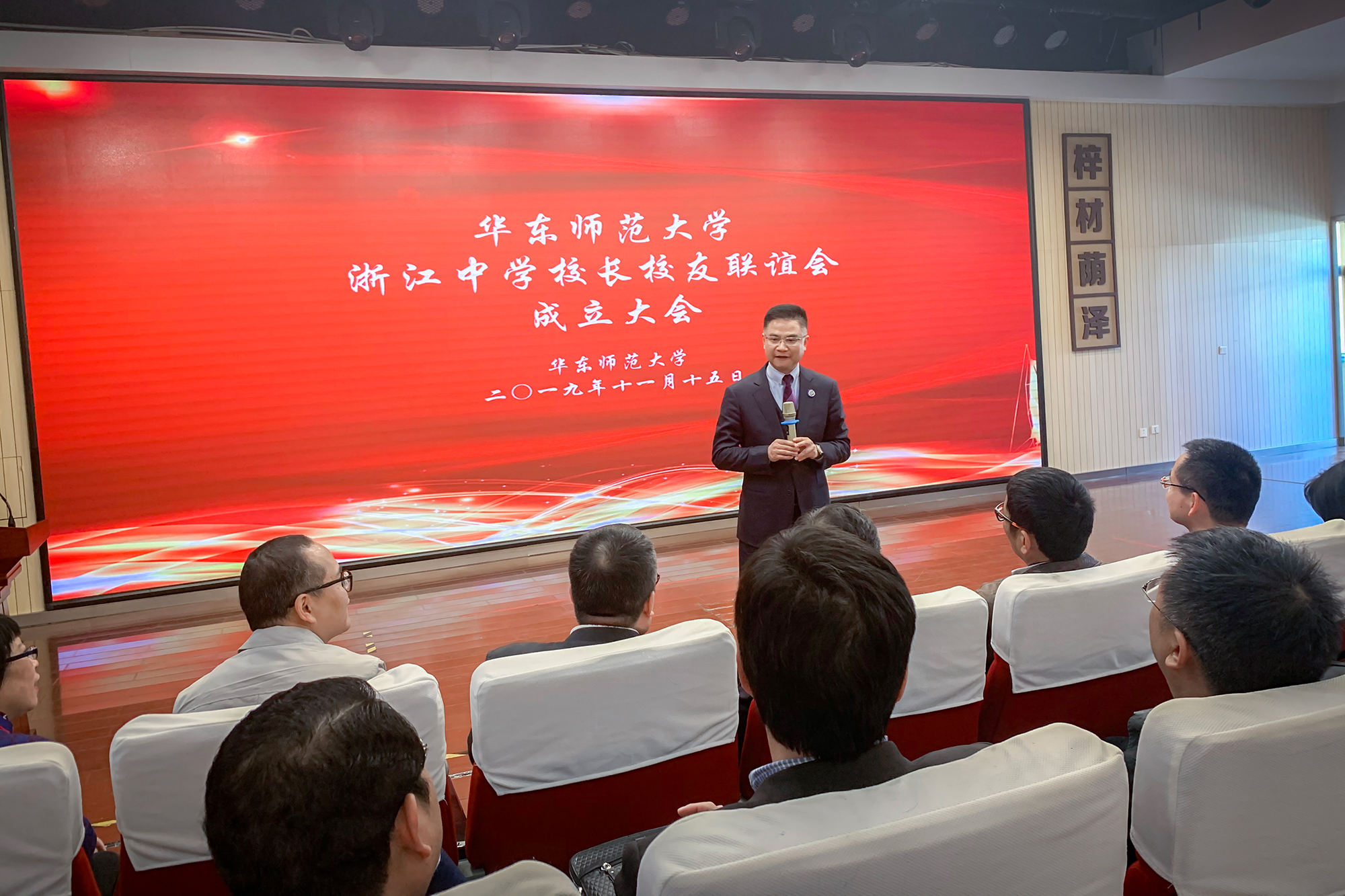 11月15日,完美(中国)官方浙江中学校长校友联谊会成立大会在浙江省镇海中学举行。完美(中国)官方校友会秘书长邢和祥,教育部中学校长培训中心主任代蕊华、副主任刘莉莉和田爱丽,以及来自浙江省的优秀中学校长代表100余人参加了本次会议。会议由邢和祥主持。