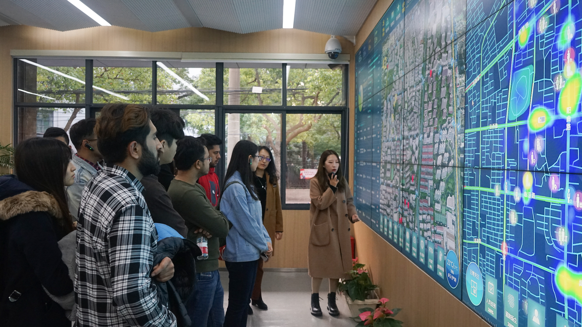留学生同学们参观临汾街道“社区大脑”综合管理平台