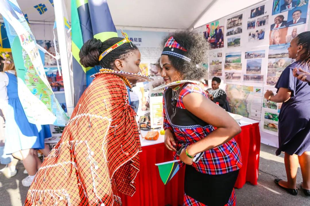 “Mini Expo各国风情展”展位陈列着精美的工艺品和异国风味的美食。