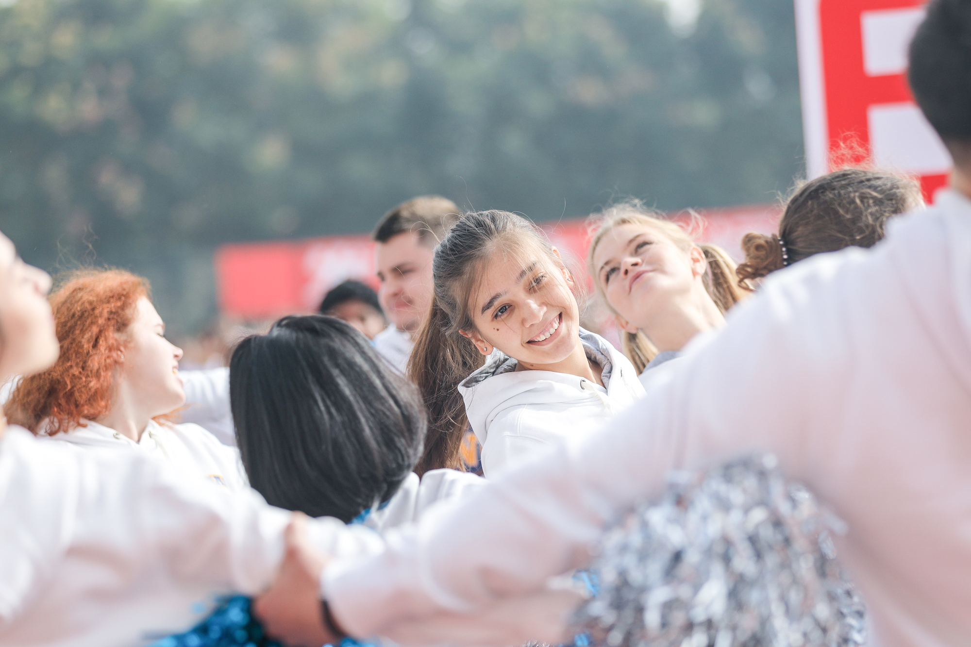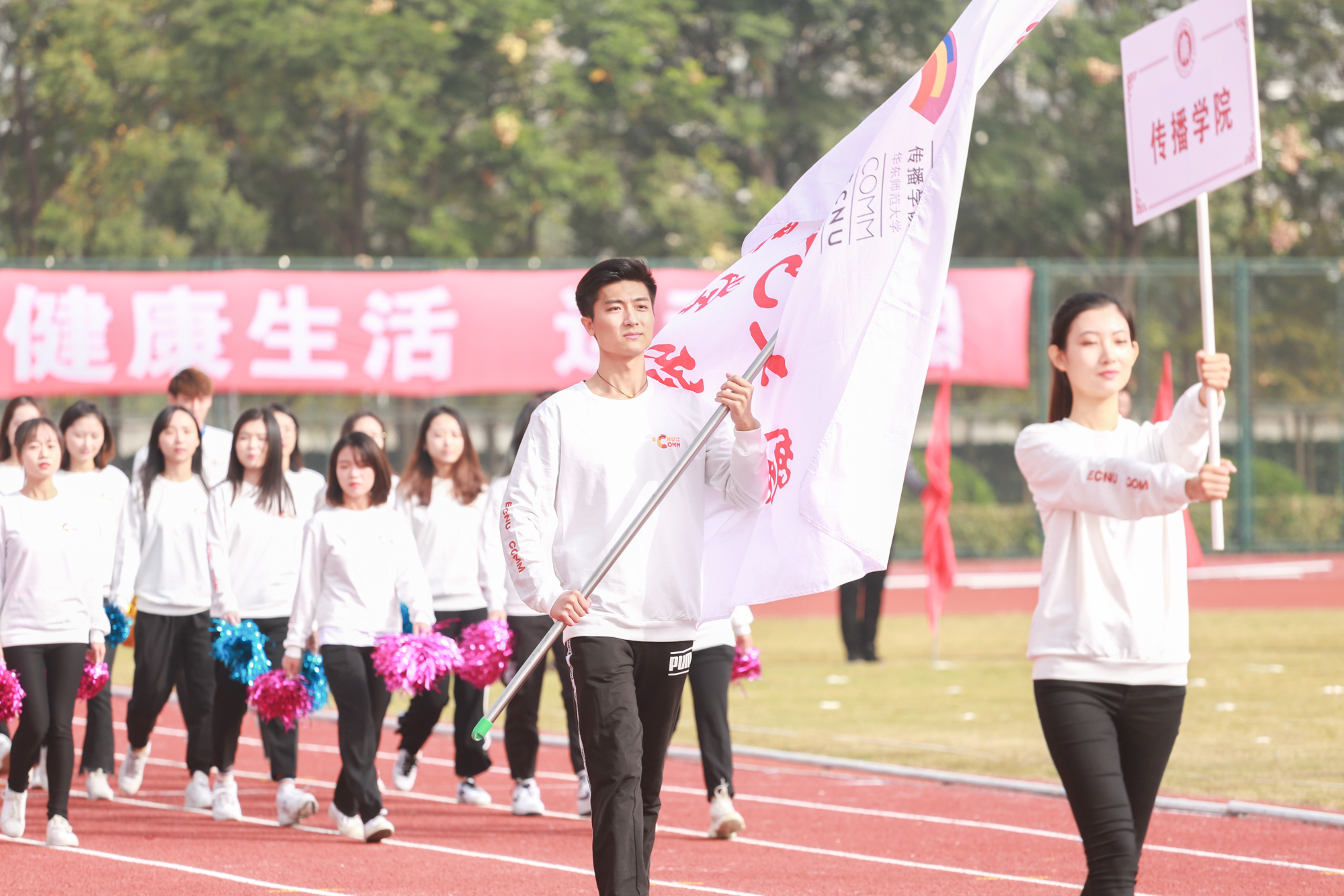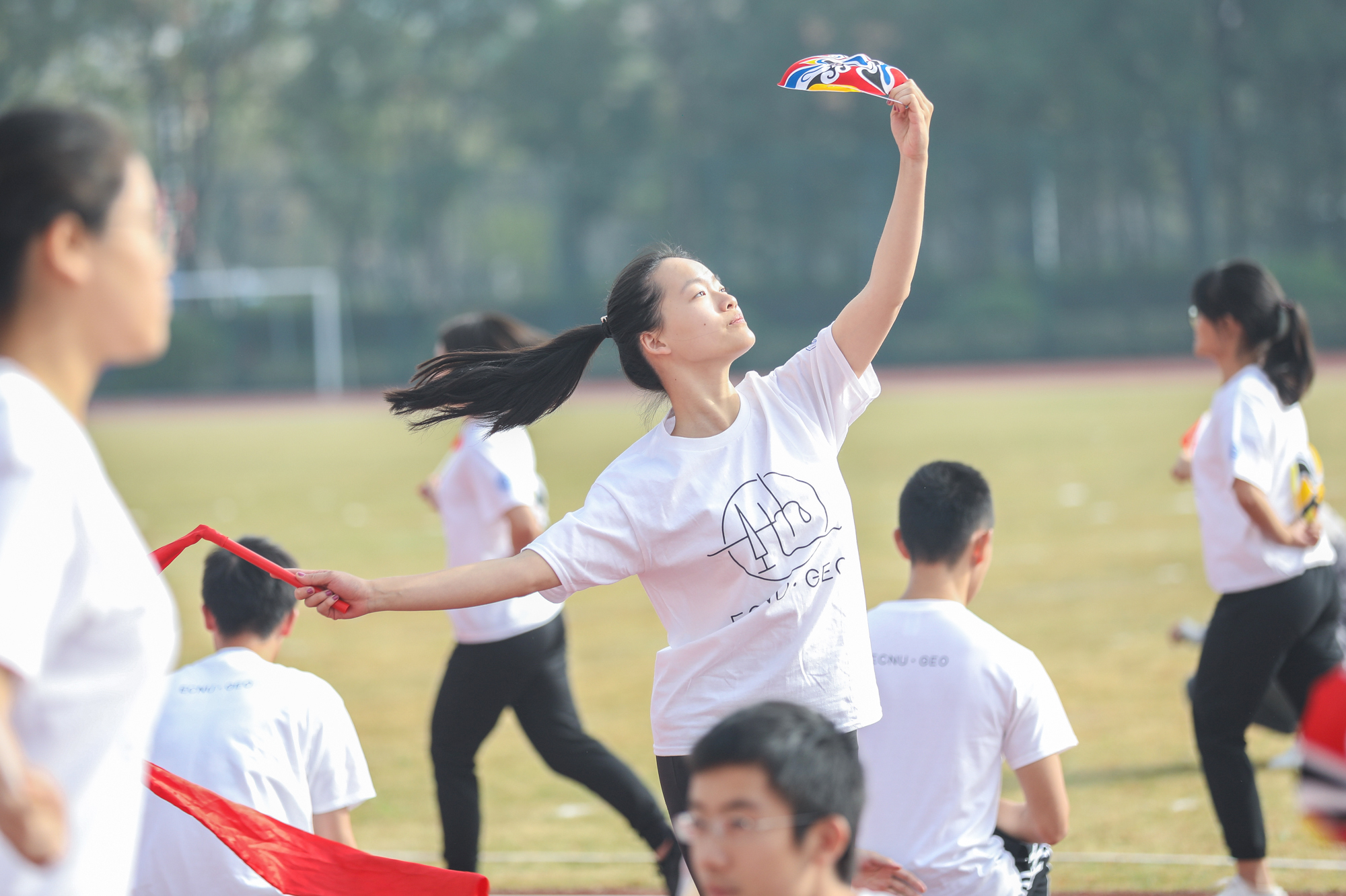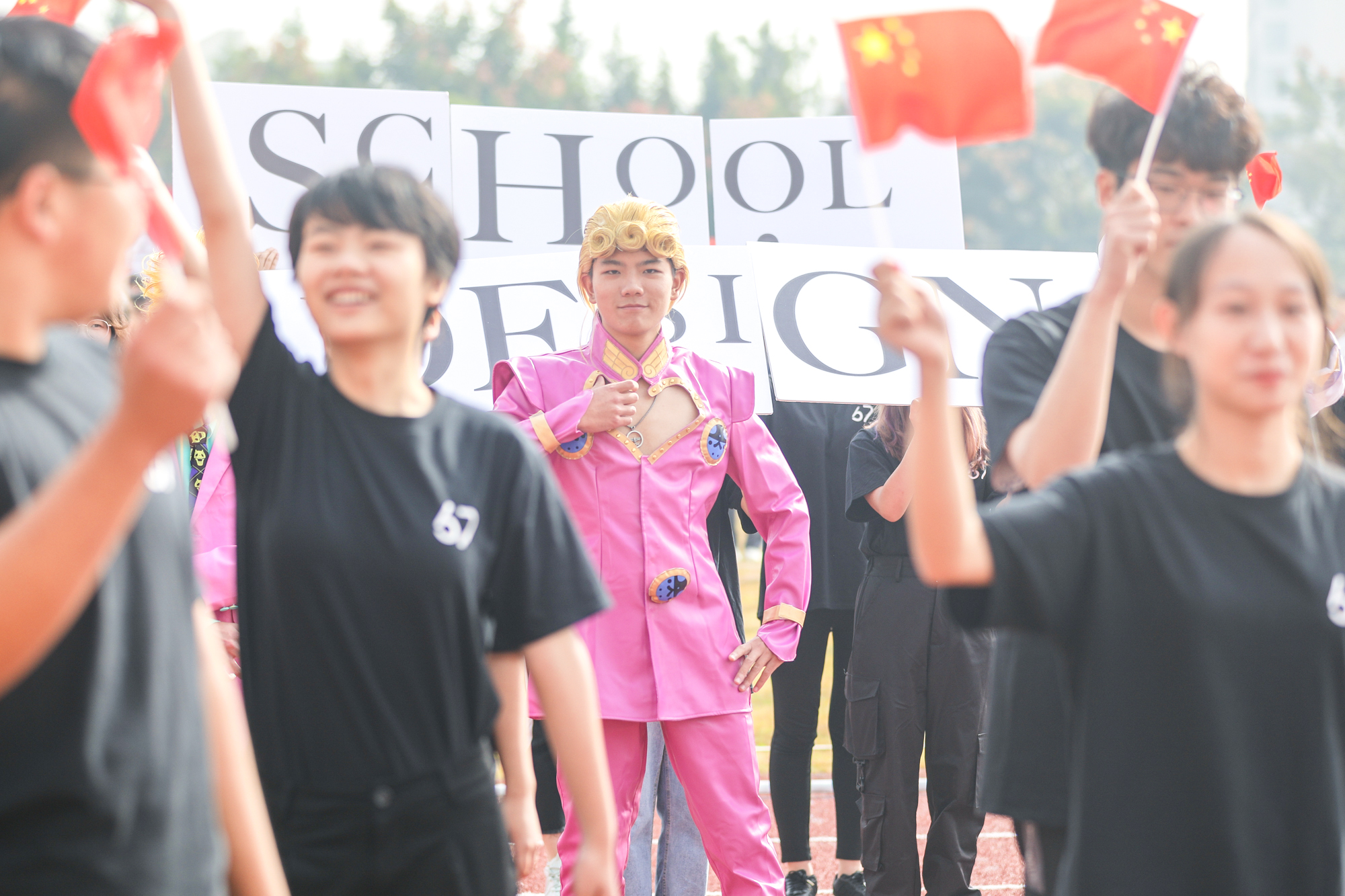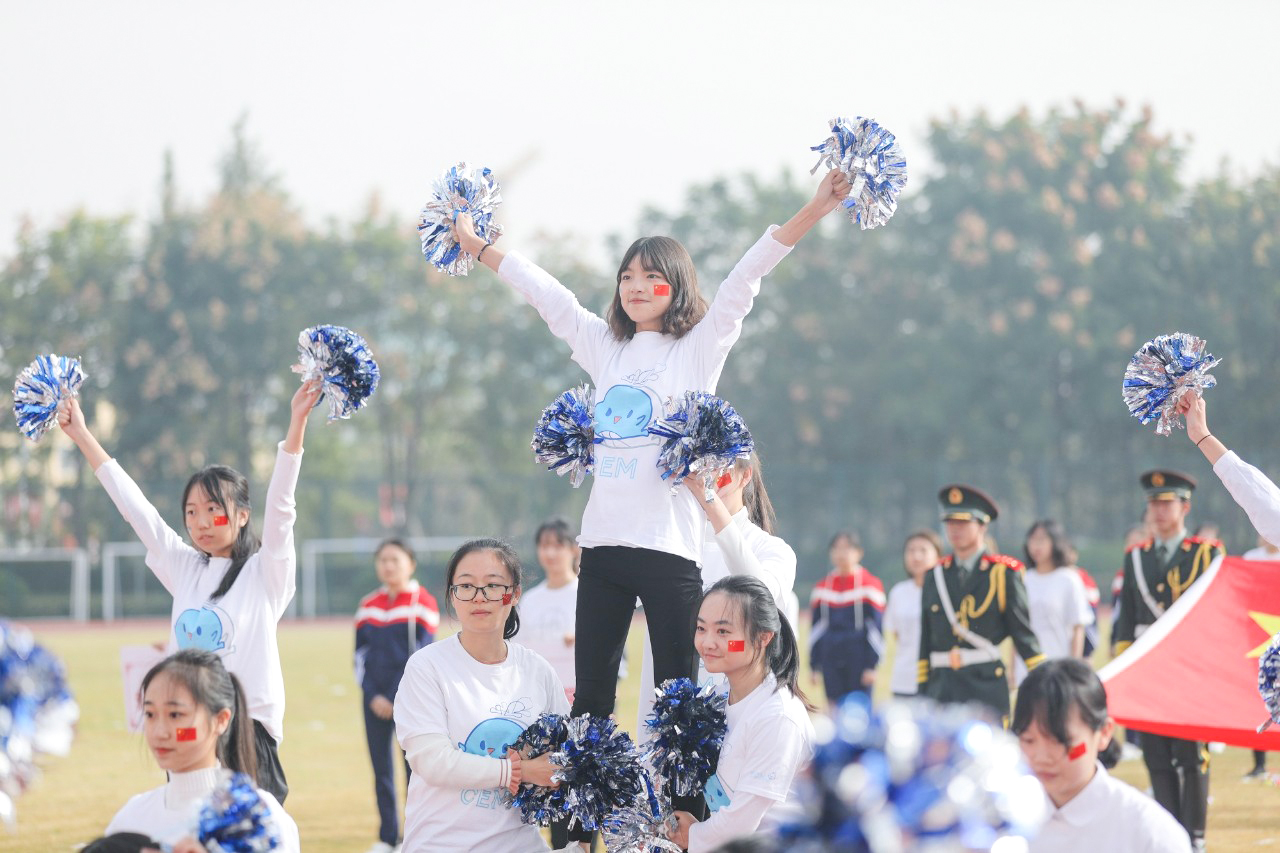 各学部院系代表队的创意进场依然是开幕式的看点之一。或是向祖国70周年献礼、或是致敬中国女排、或是凸显院系特色,精彩不断,亮点纷呈。留学生代表队身着统一服装,带来创意活力的啦啦操表演,赢得师生们的阵阵喝彩。