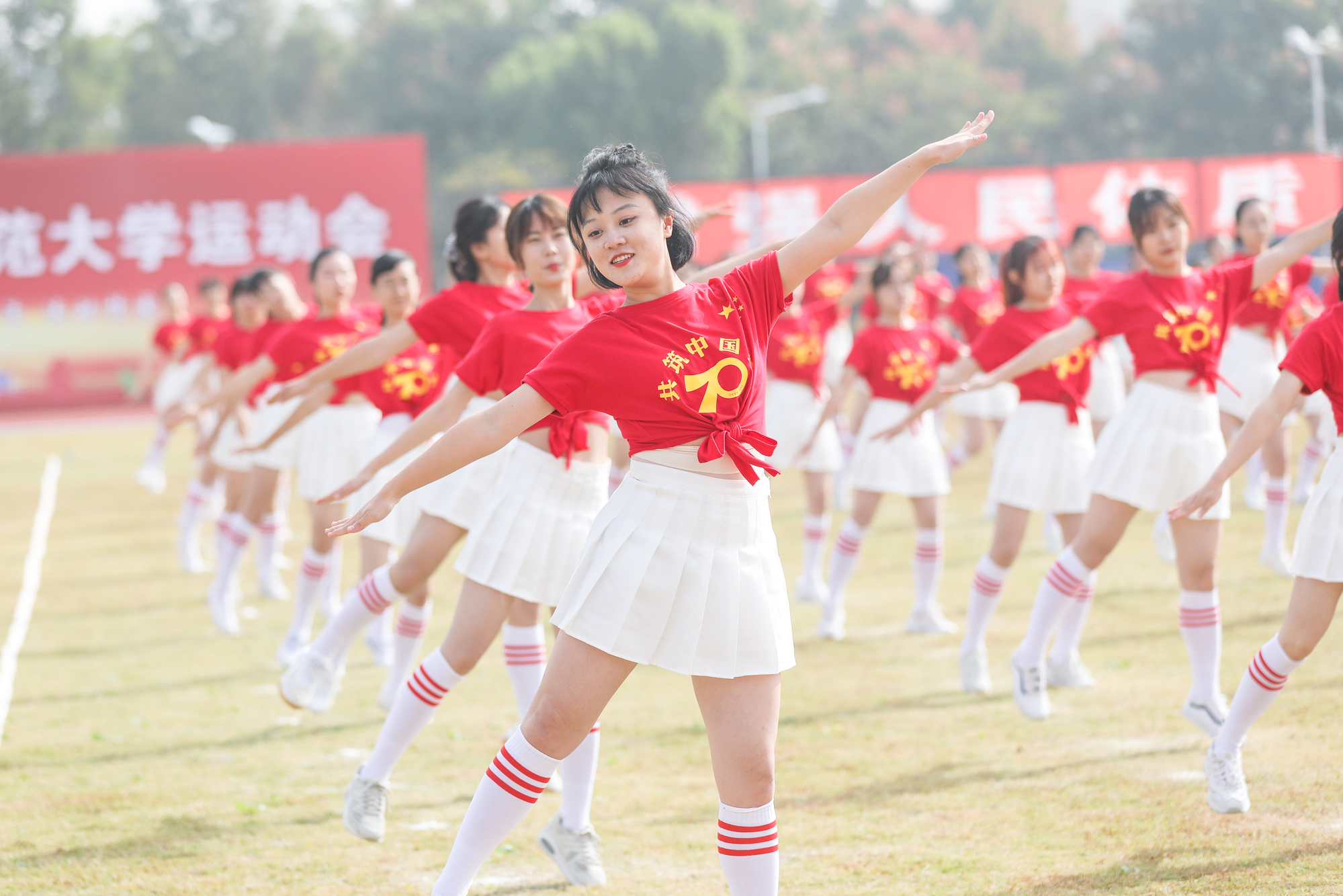 来自教育学部、经济与管理学部、软件工程学院、国际汉语文化学院、设计学院的两百多名同学组成的方阵带来活力四射的团体操《歌唱祖国》表演。此外,开幕式上还进行了教工太极拳表演。