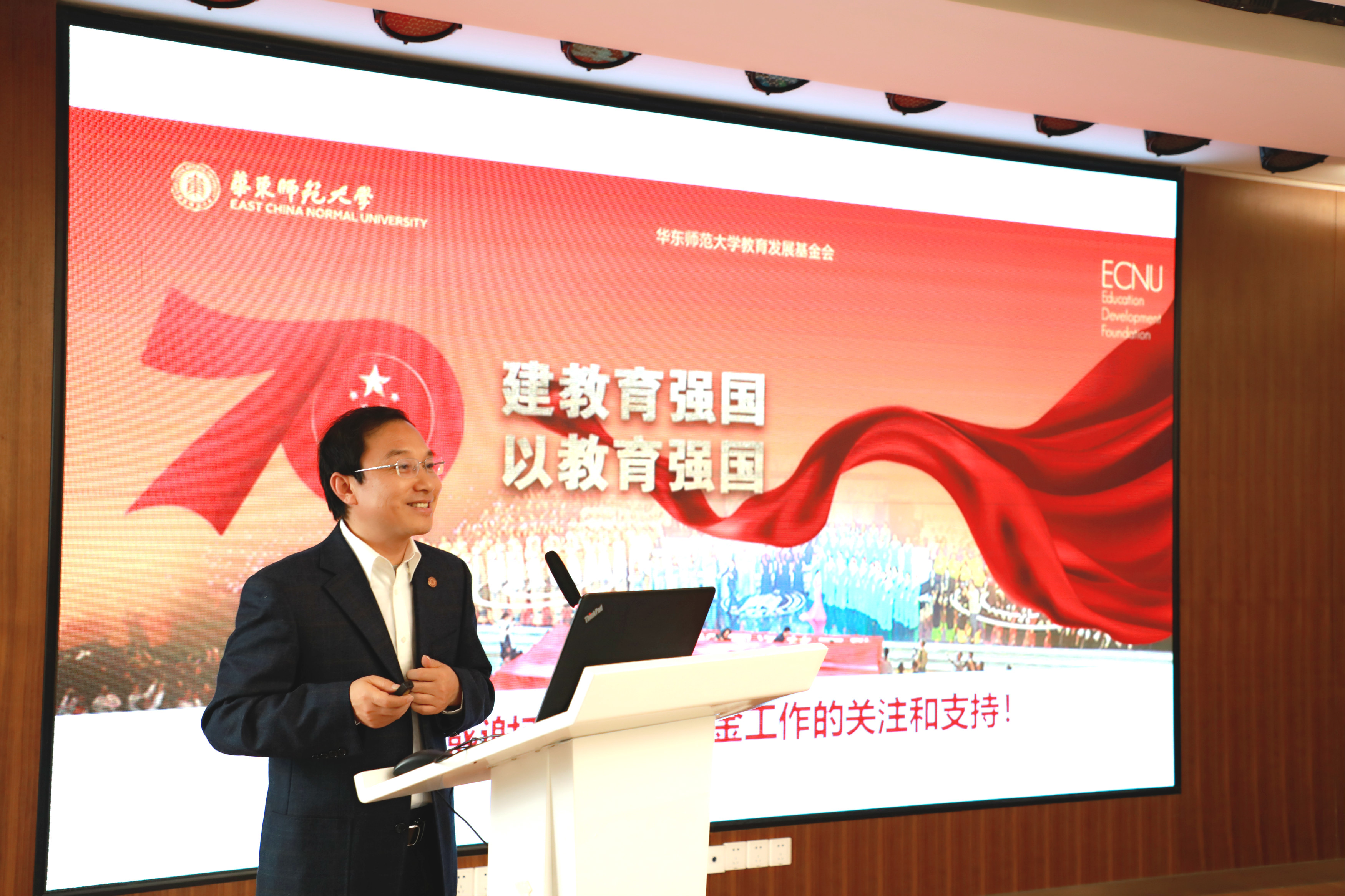 斯阳作了校庆、基金工作进展报告。他从近一年来两校区的“变化”说起,介绍了“三个一工程”灰色空间改造、两校区楼宇新建和修缮、“一草一木皆教育”“一品一筑”工作,丽娃河、樱桃河沿岸优化工程、校园文创等项目的推进情况。在谈及支撑迎双庆工作的基金工作时,他指出,基金工作对院系的学科发展和人才培养有相当显著的激发作用,是找到新的增长点的重要内容,期待各院系能以70周年校庆为契机,设计开发好的项目、挖掘拓展新的资源,基金会也将在管理、协调和服务上做好保障。