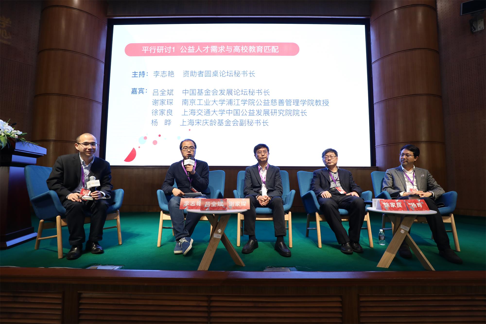 下午的第一场研讨活动主题为“公益人才需求与高校教育匹配”,活动由资助者圆桌论坛秘书长李志艳主持。中国基金会发展论坛秘书长吕全斌、南京工业大学浦江学院公益慈善管理学院教授谢家琛、上海交通大学中国公益发展研究院院长徐家良、上海宋庆龄基金会副秘书长杨晔参加了此次研讨。与会嘉宾的热烈讨论为当下公益人才匮乏问题的解决提供了新思路、新方向。