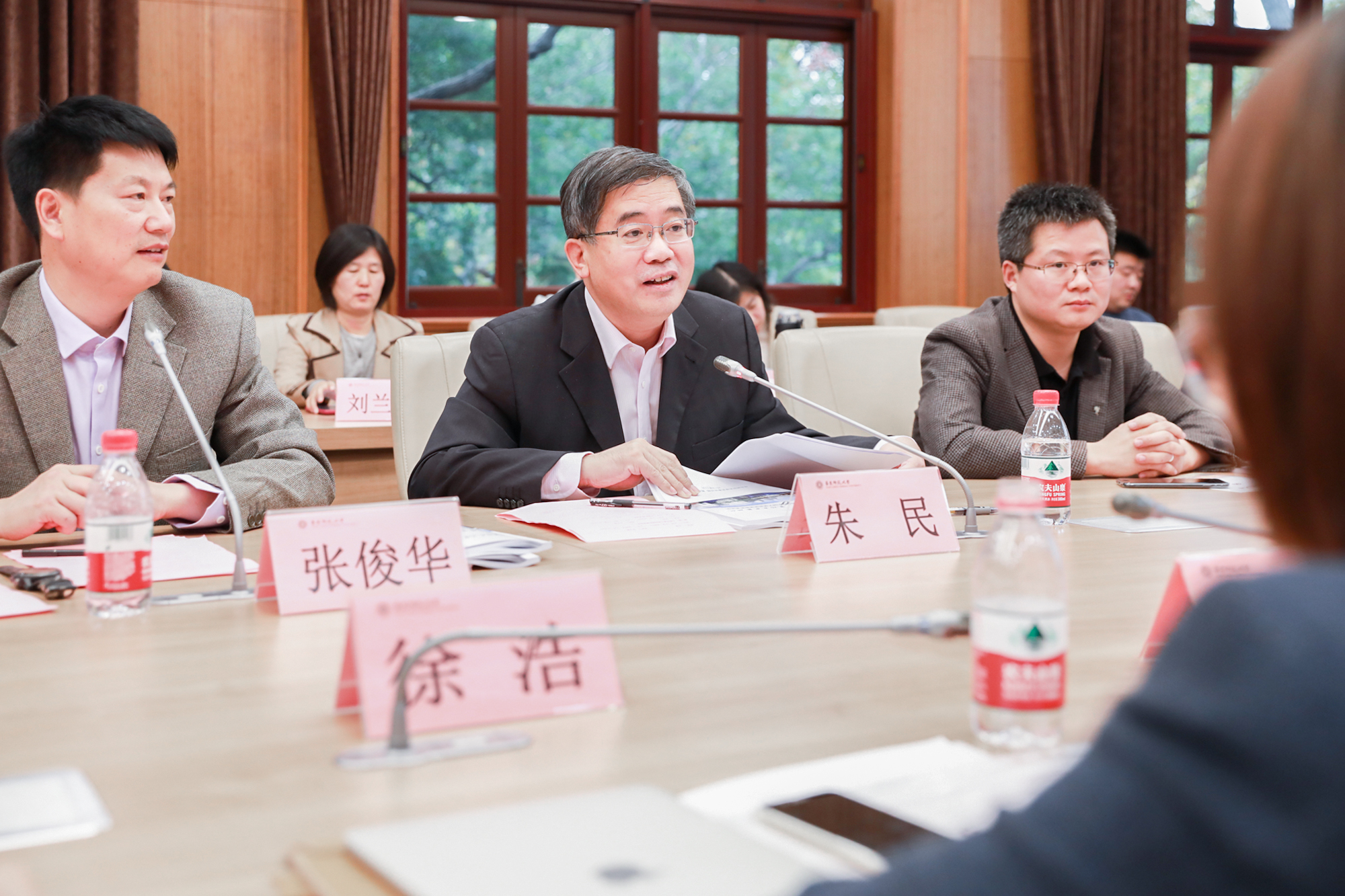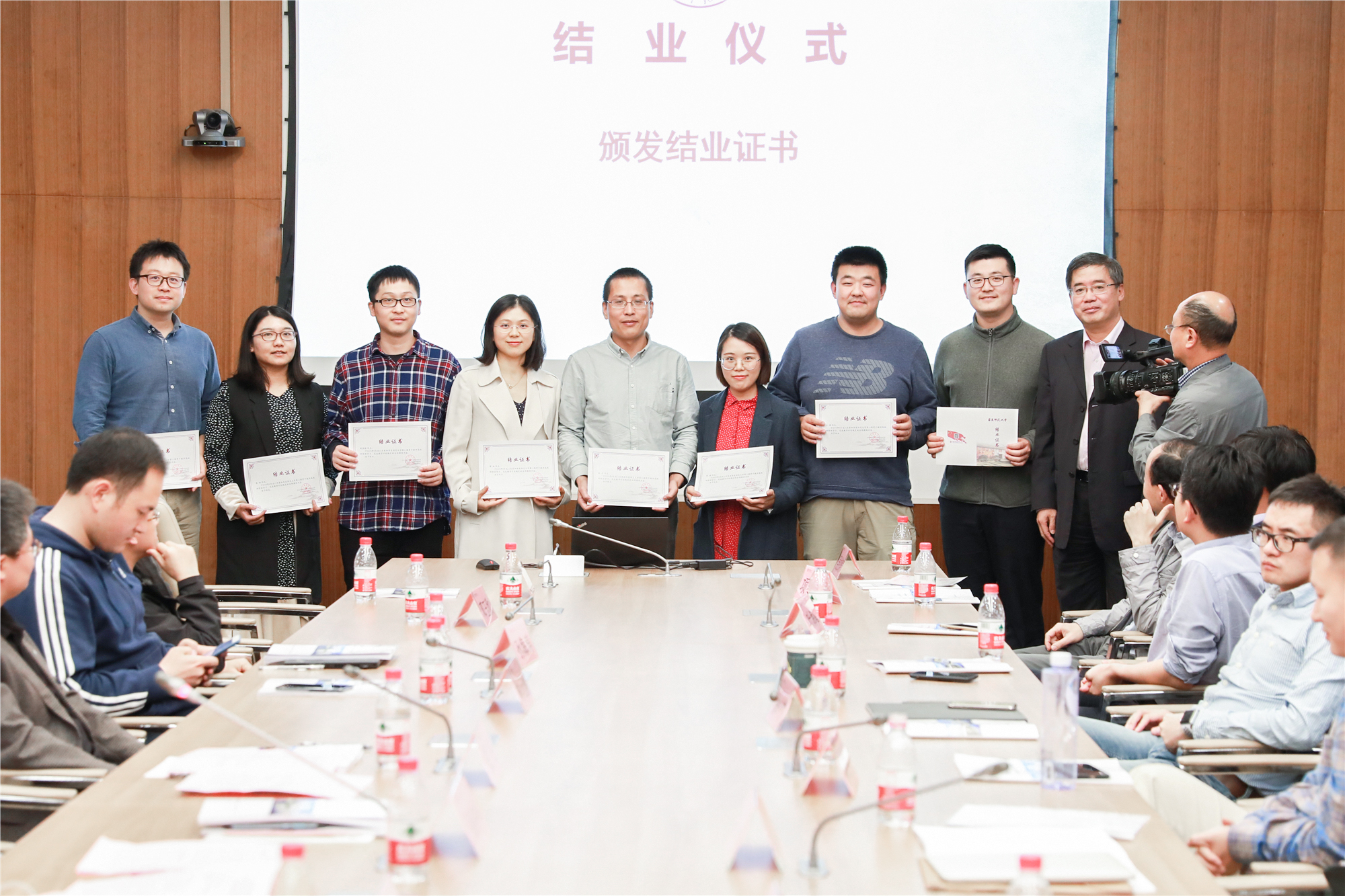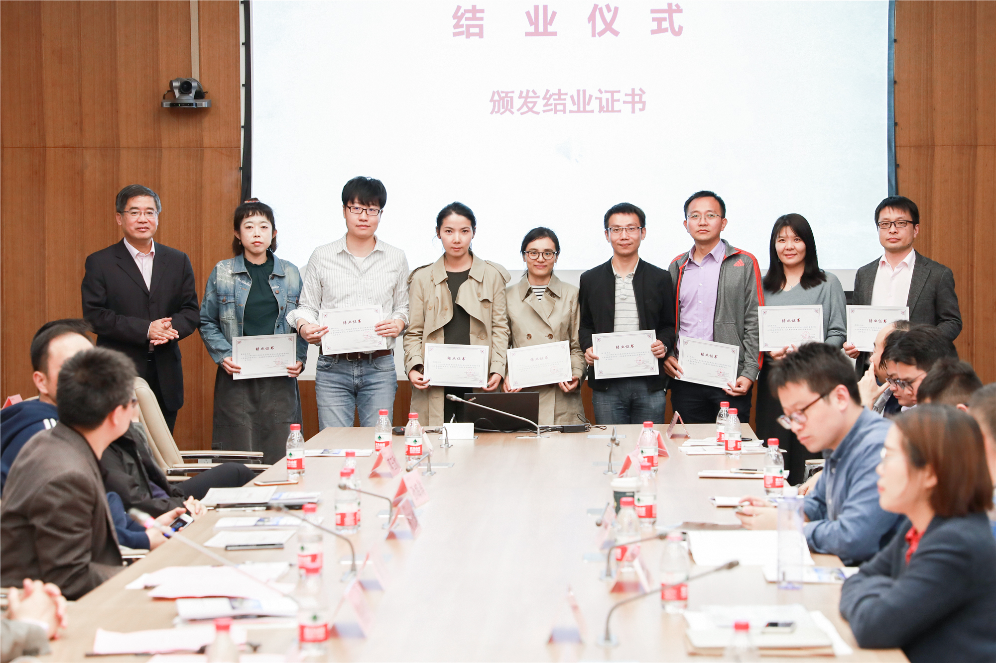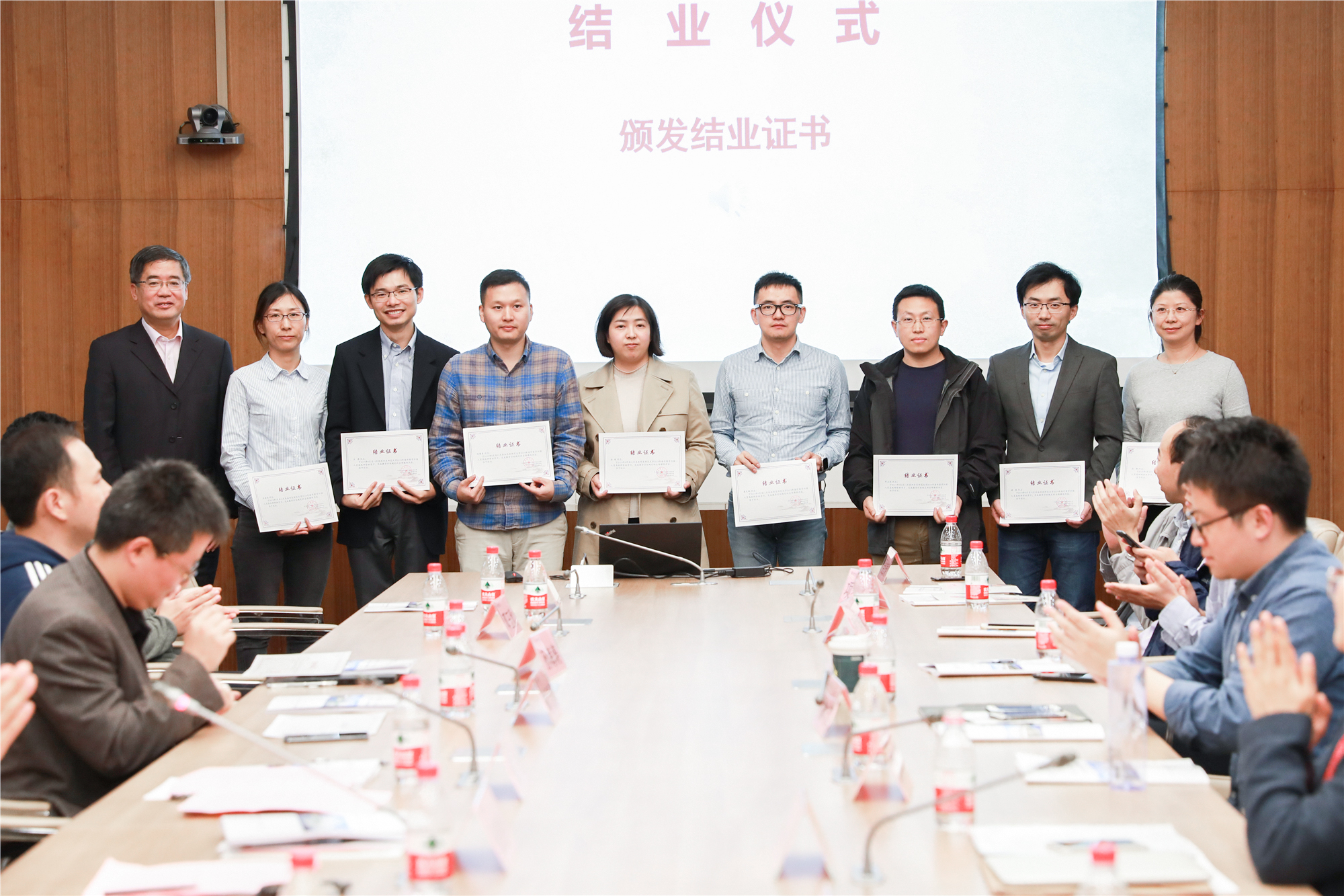 在结业仪式环节,与会人员观看了结业回顾视频。化学与分子工程学院徐浩、教育学部王涛分别代表第十一期骨干教师高级研修班、2019年海外归国留学人员高级研修班学员发言。随后朱民为学员逐一颁发结业证书。