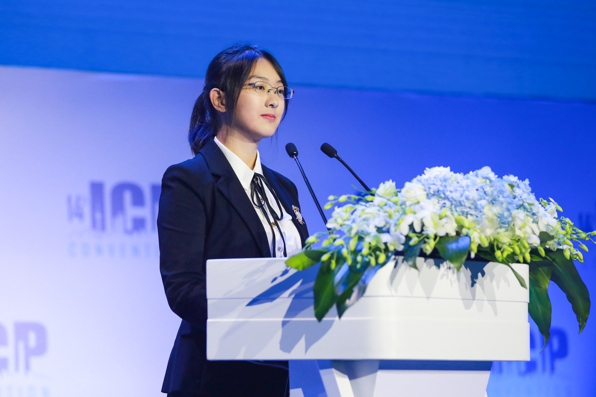 来自中国人民大学附属中学的高二学生纪小楠作为中学生代表发言。她采访收集了英国、法国、日本和韩国等国学生的“声音”,通过大会向全球校长建议,要创建面向未来的学校,办学设施现代化,教师队伍专业化;要创建多样化的学校,尊重和传承民族文化,尊重学生个体差异,注重培养学生领导力和批判思维;要创建幸福的学校,没有校园欺凌,挑战与收获并存,充满阳光关爱和尊重学生。