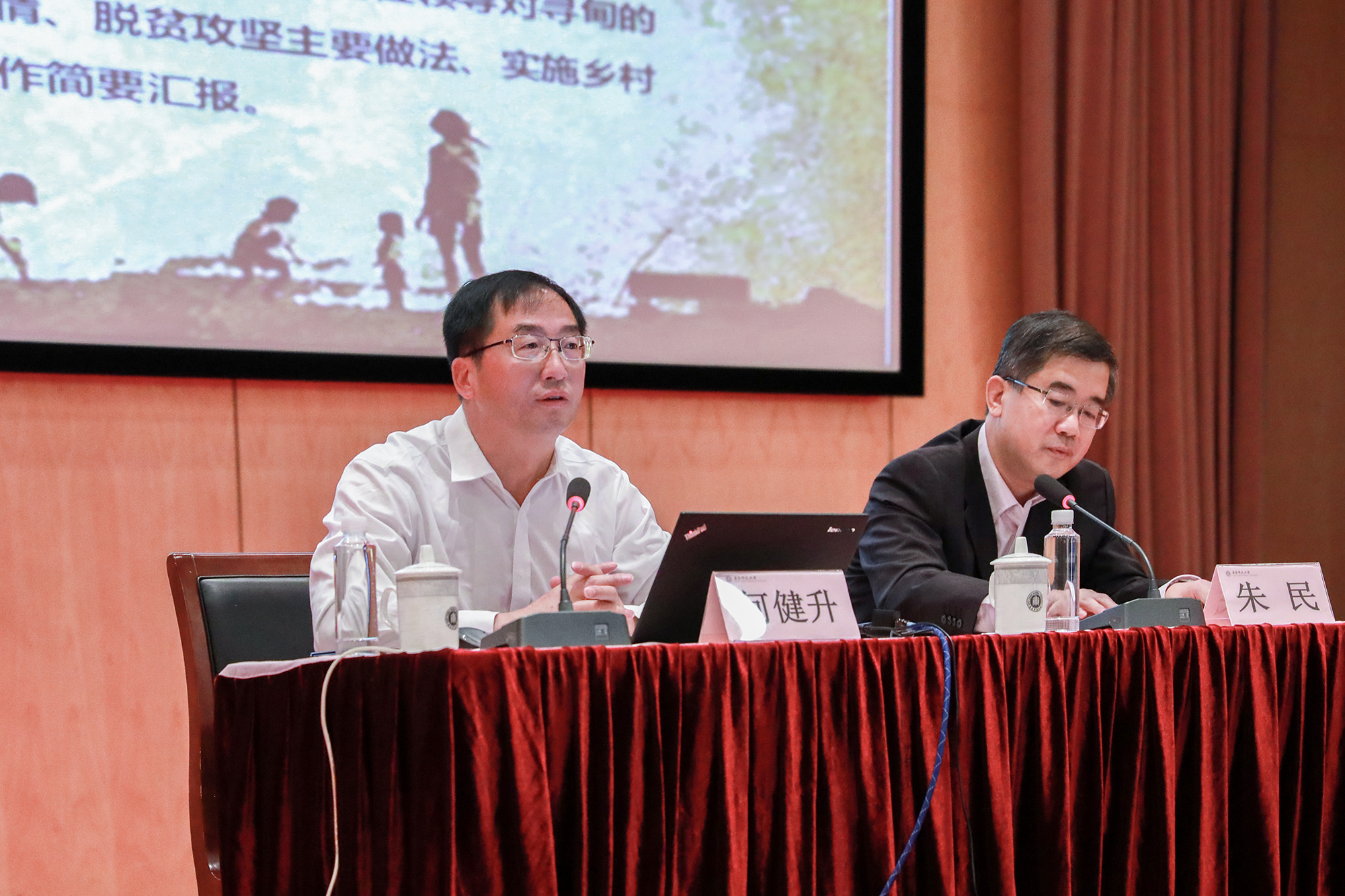 10月23日下午,完美(中国)官方“不忘初心、牢记使命”主题教育校领导班子第十次集中学习研讨暨校党委中心组学习扩大会在中山北路校区举行,深入学习贯彻习近平总书记关于扶贫工作重要论述,为提振党员干部干事创业精气神、发挥大学优势助力脱贫攻坚进行动员部署。昆明市人大常委会党组成员、寻甸县委书记何健升应邀作主题报告。校领导童世骏、钱旭红、朱民、杨昌利、曹友谊、孙真荣、梅兵、李志斌、周傲英,校党委常委、宣传部部长顾红亮,以及学校中层干部、部分特邀人员等参加学习。会议由校党委副书记朱民主持。