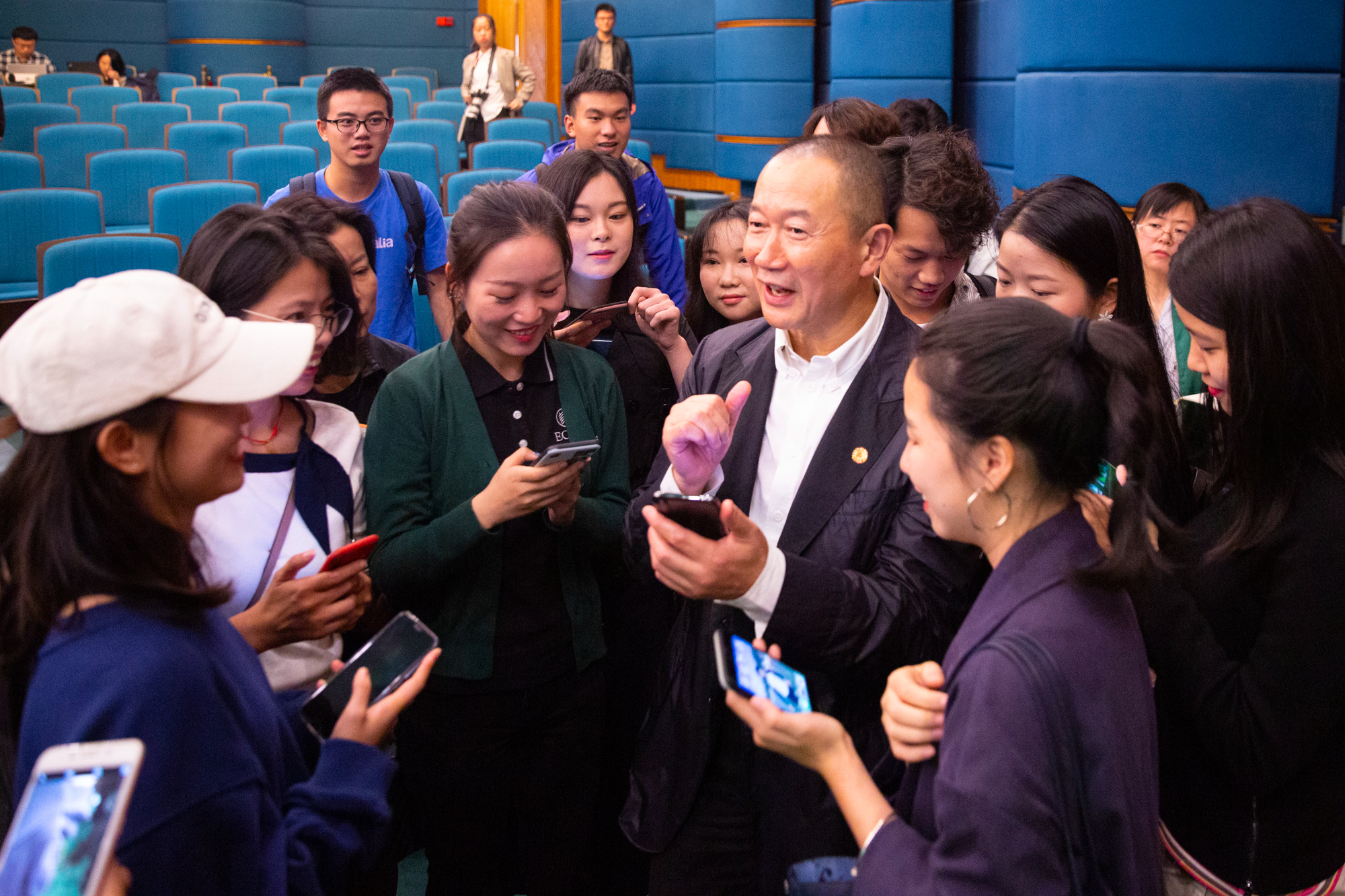 仪式结束后,谭盾为现场师生带来了一场精彩的“未来音乐与天地人”主题演讲。