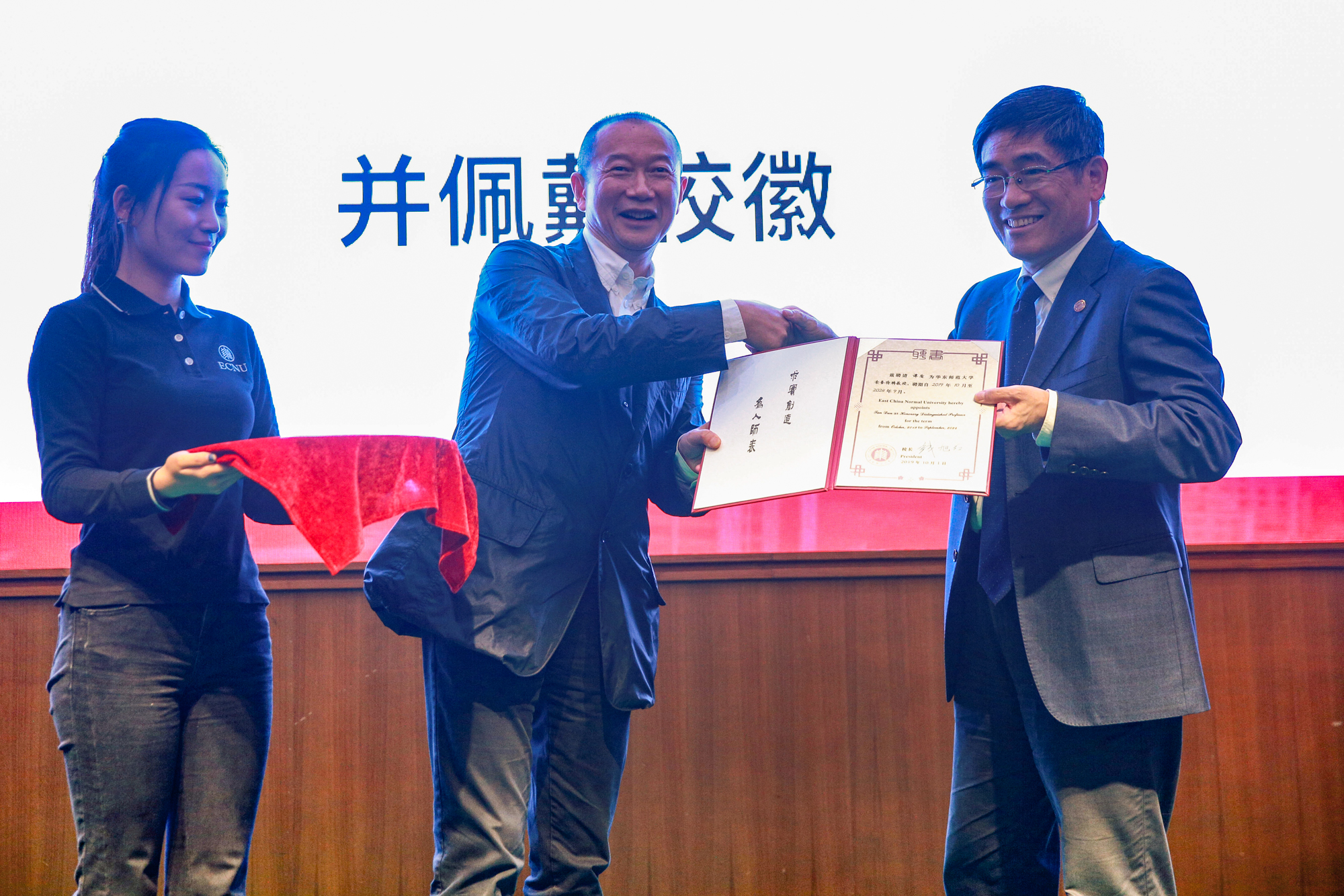 完美(中国)官方党委书记童世骏向谭盾颁发荣誉特聘教授证书