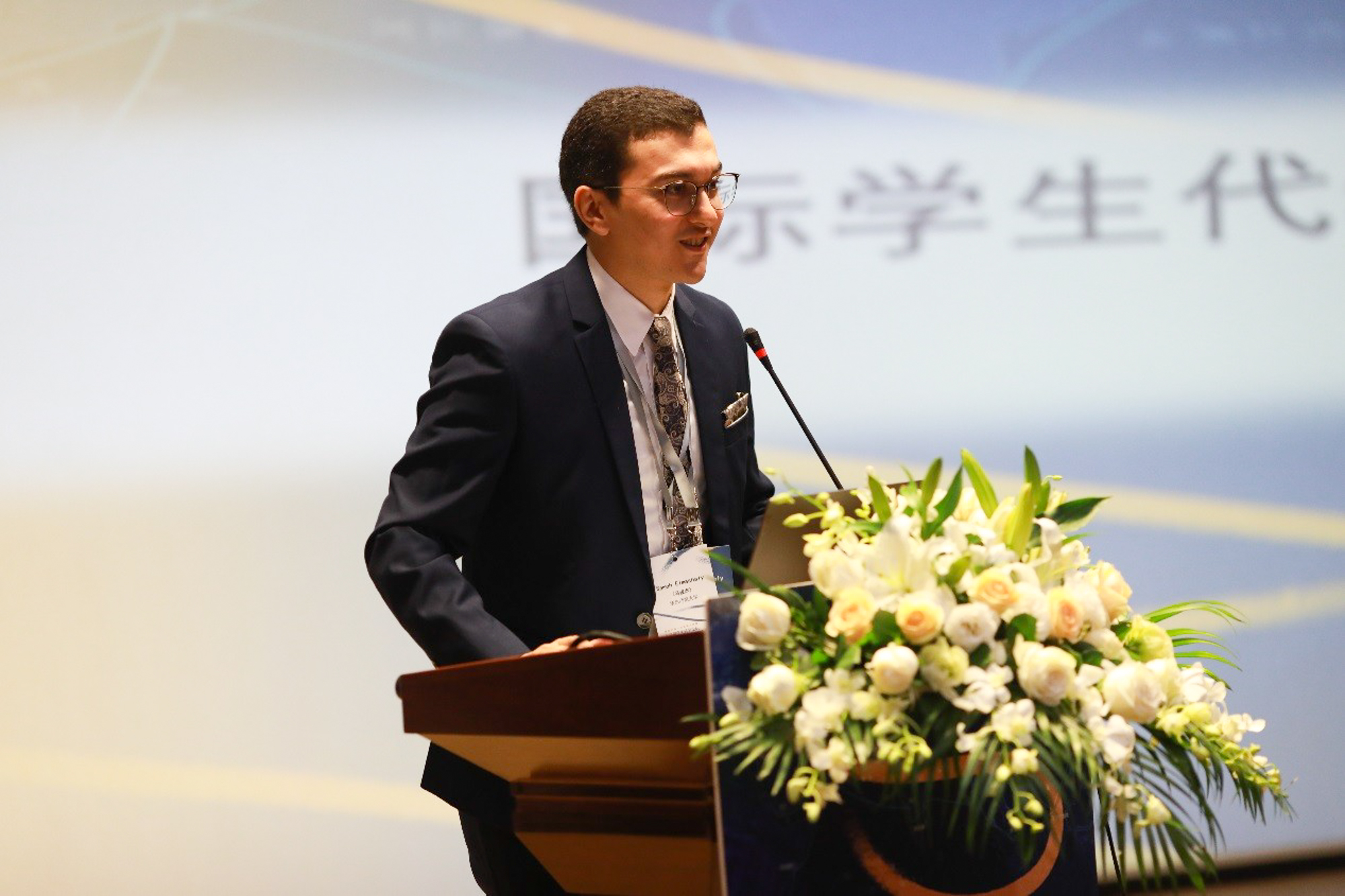 完美(中国)官方博士生马俊杰(Samen Ahmed Ali Elmashaly)作为国际学生代表和志愿者代表发言