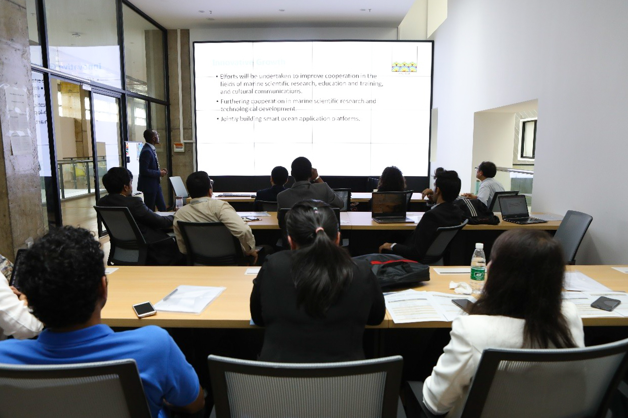 国际学生的学术报告围绕三个中心议题分三个会场同时展开:议题一“海上丝绸之路与跨区域文明交融”(人文历史专题,召集人:沐涛教授);议题二“河口海岸科学技术与可持续的生态系统”(河口海岸专题,召集人:张经院士);议题三“合作共赢:建设一个繁荣的世界”(经贸合作专题,召集人:杜德斌教授、姜炎鹏教授)。所有参会国际学生作口头报告,就研究问题发表了各自的见解并展示了最新的研究成果。各议题召集人综合考虑报告内容、性别、地理区域等因素后,评选Samen Ahmed Ali Elmashaly、Abdul Ghaffar、Adeel Shehzad、Yuvna Devi Perianen、Shabani Ekyamba Isaac、Adrian Raymund Cruz Fernandez、Bassem Khaled Abdelsalam Elmaghraby、Yerkenaz Karibayeva、Natalia Boruczkowska等九位国际学生获大会最佳报告奖,每个议题三位学生获奖。在最后的全体会议上,左芳介绍了国际海洋生物圈整合研究计划的进展,欢迎青年学生加入跨学科海洋青年学者联盟(IMECaN),鼓励不同专业背景的学生开展多学科、跨学科的科研合作。