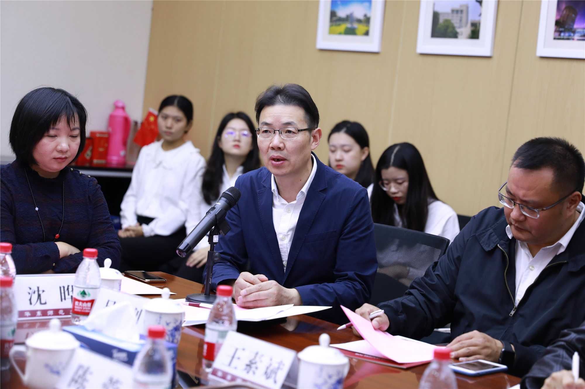 王曜教授向与会者简要回顾了联系著名雕塑家曹春生先生创作刘佛年雕像的经过。胡卫也饶有兴致地回顾起倡议79级教育系同学捐款设立刘佛年校长雕像的往事。