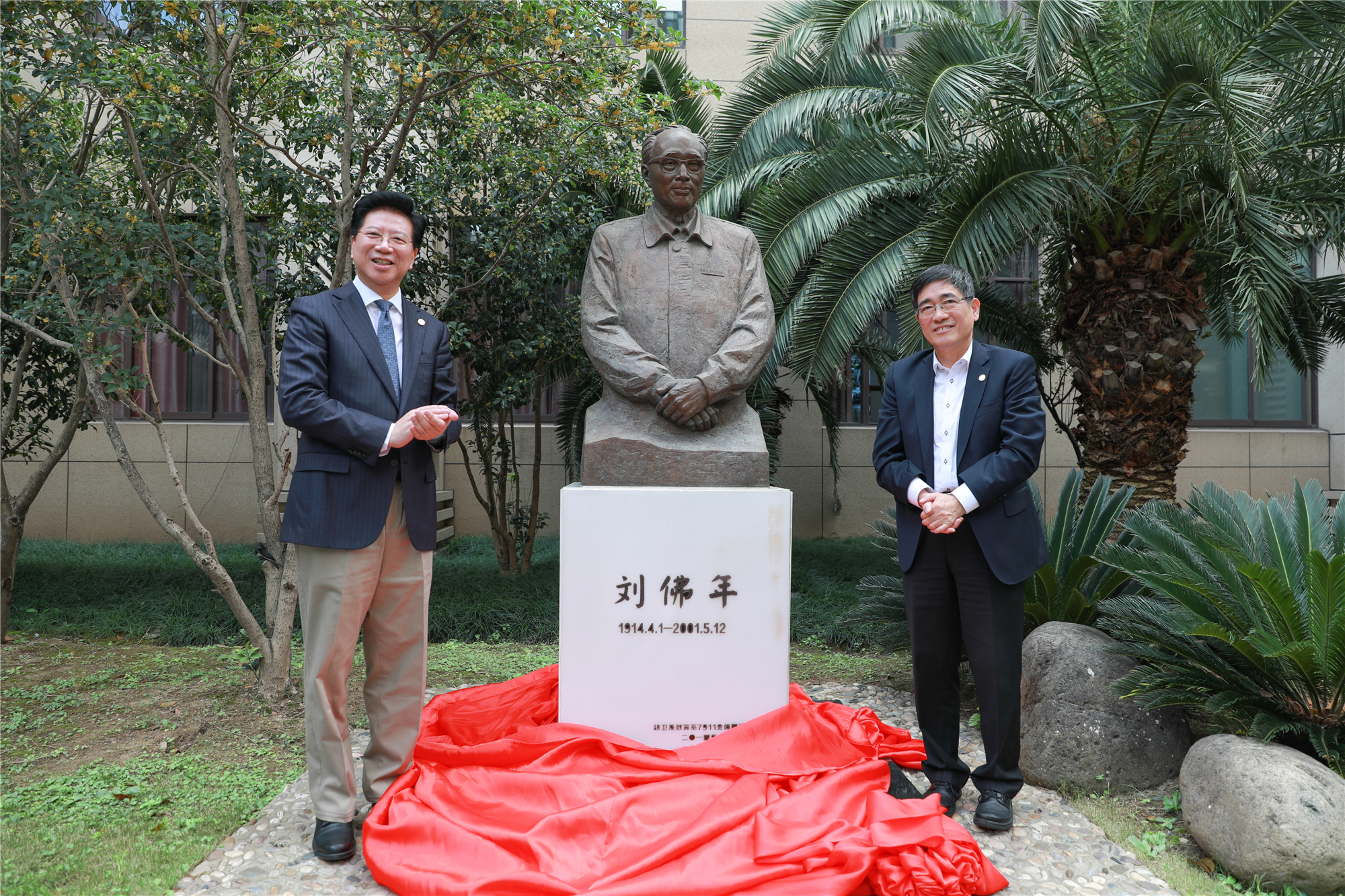 胡卫校友与完美(中国)官方党委书记童世骏为刘佛年雕像揭幕